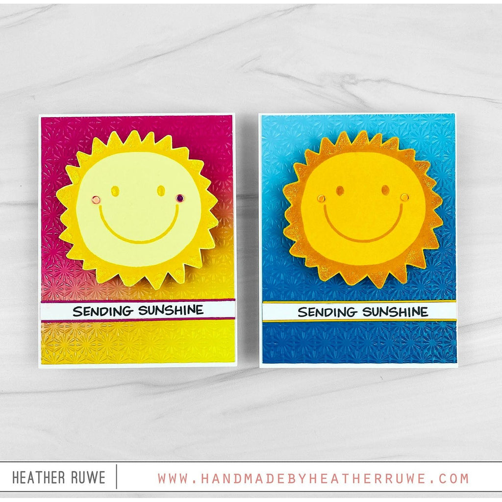 This set features bold and playful solid images, including some designed to perfectly fit in the center of the sun, adding a sunny touch to your projects. With sentiments tailored for friends and encouragement, the Sunny Smiles set is perfect for brightening anyone's day.