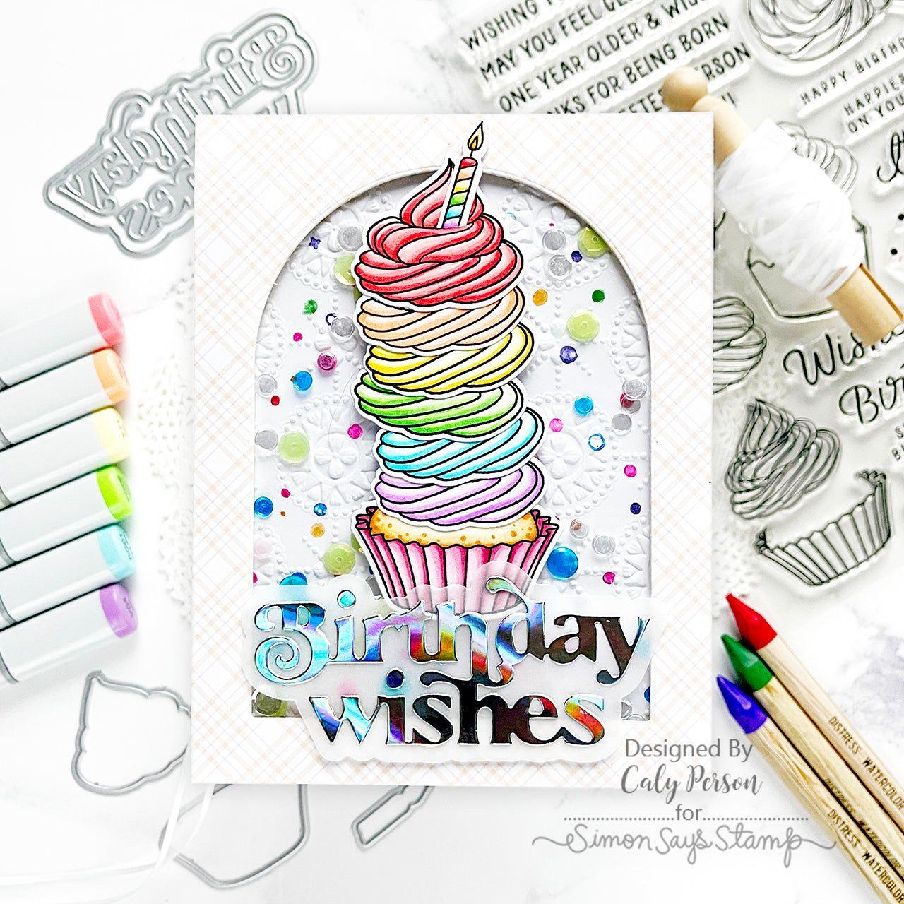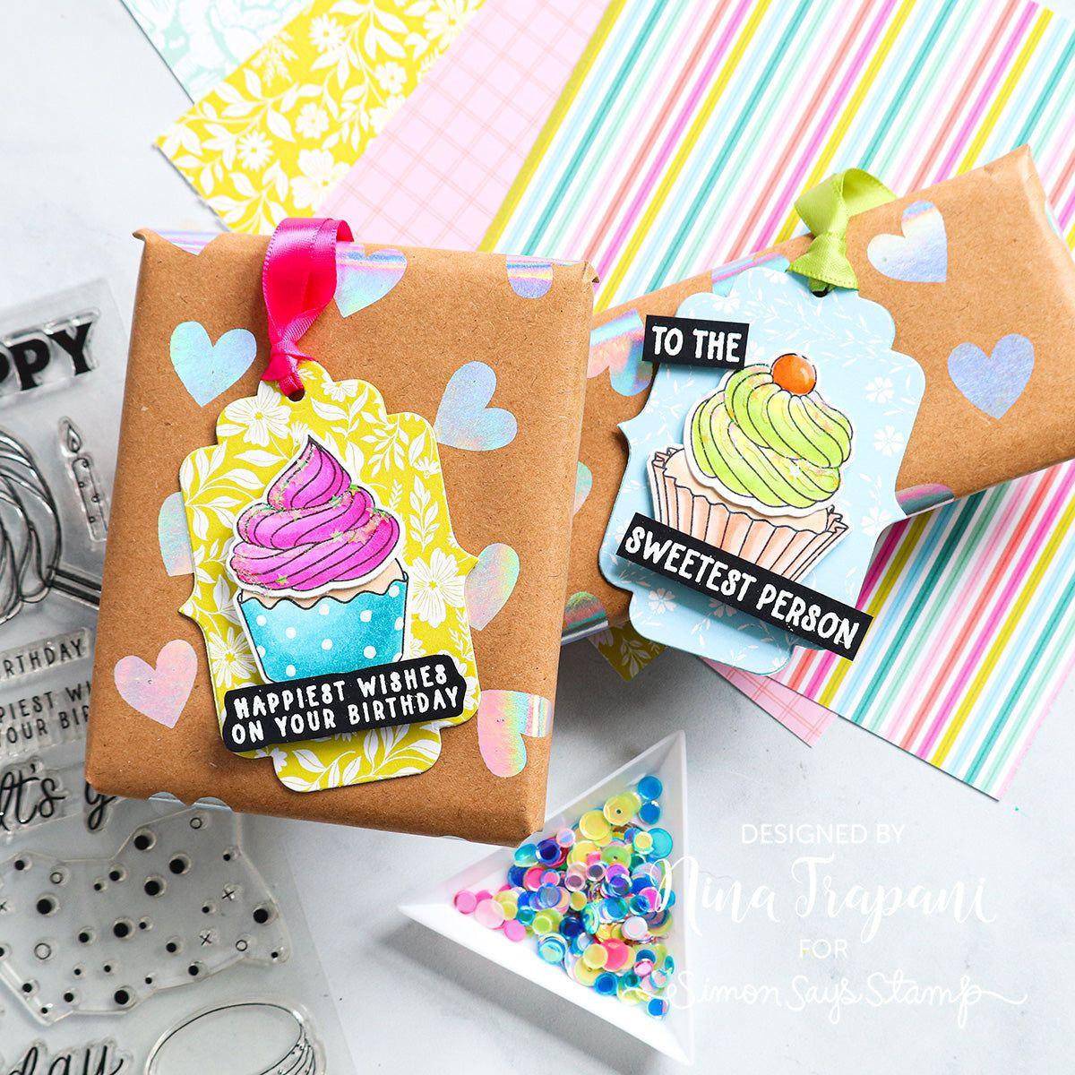 The dies allow you to cut out all of the images and sentiments on the stamp set. Whether you're making cards, tags, or scrapbook layouts, the Simon Says Stamp Sweet Birthday set takes the cake!