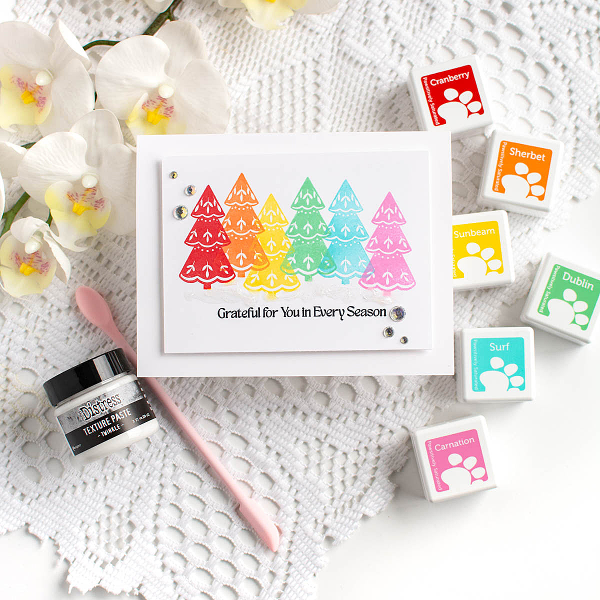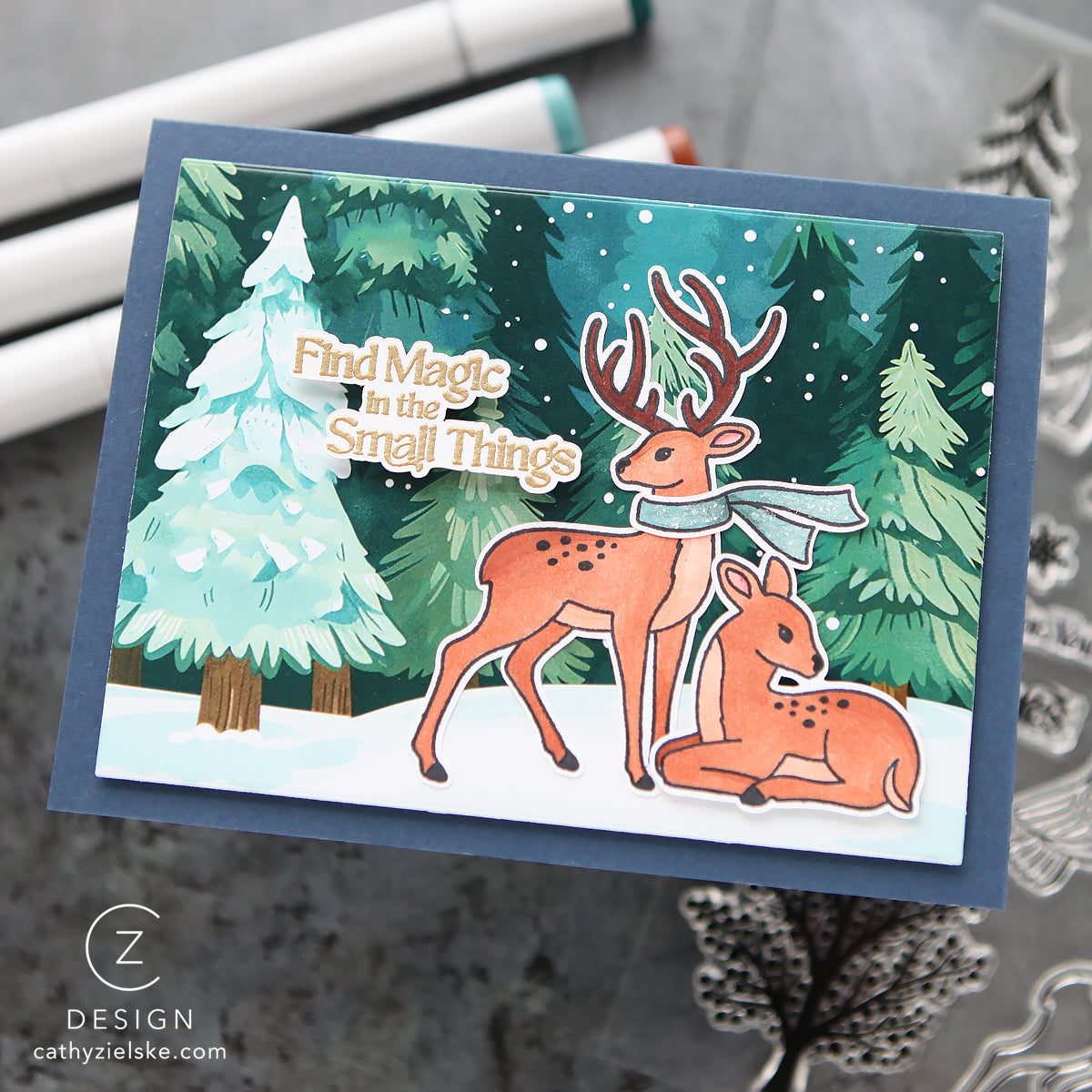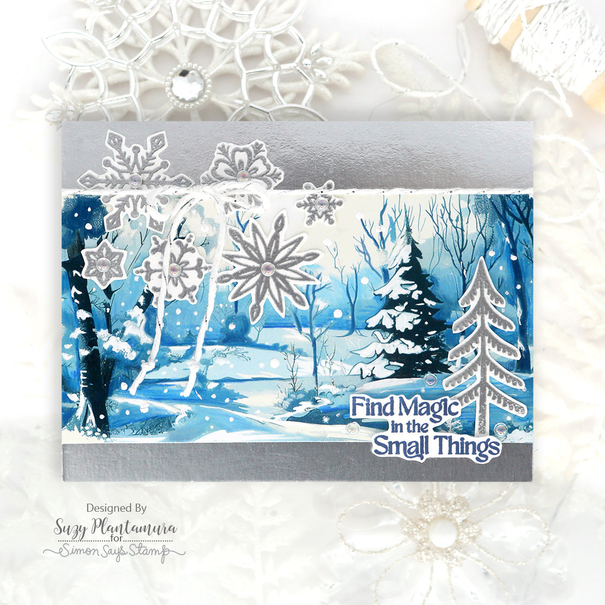 Simon Says Stamp The Small Things stamp and die set is a charming woodland collection perfect for building sweet, storybook scenes. This set combines solid images of trees and snowflakes with delicate outline images of woodland animals, including a deer, owl, rabbit, fox, and songbird. Add personality and seasonal charm with the included scarves, letting you customize each critter for winter cards, cozy scenes, or playful accents.