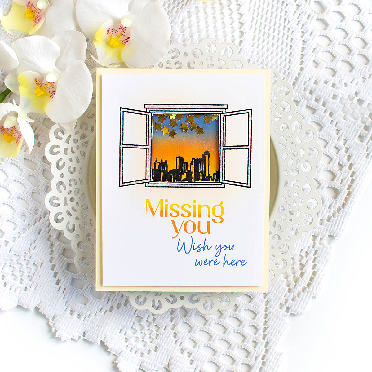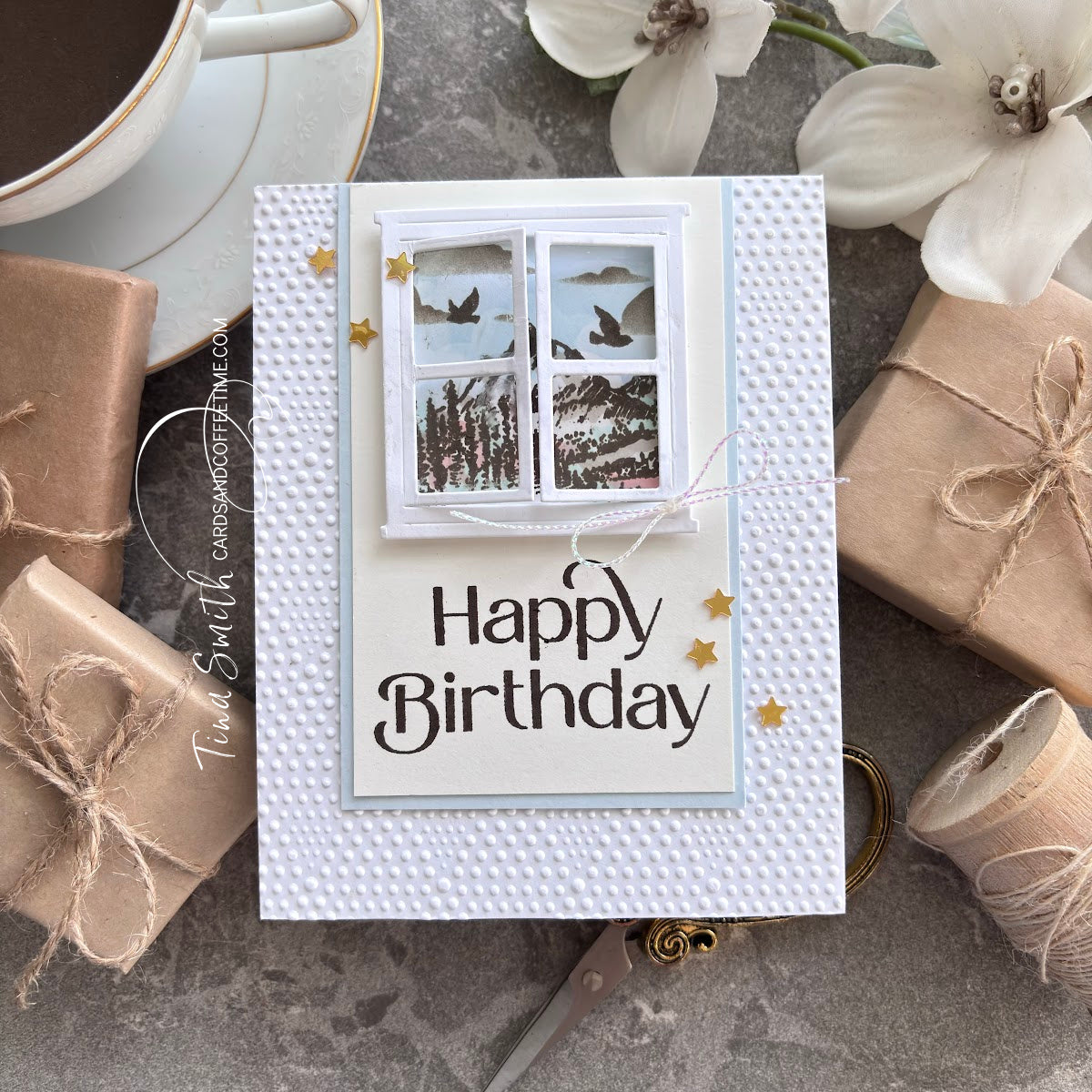 You’ll also find small accent images, including a pair of sweet birds and a tiny flying insect, ideal for adding extra charm and movement to your designs. The dies cut out the window, the tiny flying creatures, and all of the sentiments.