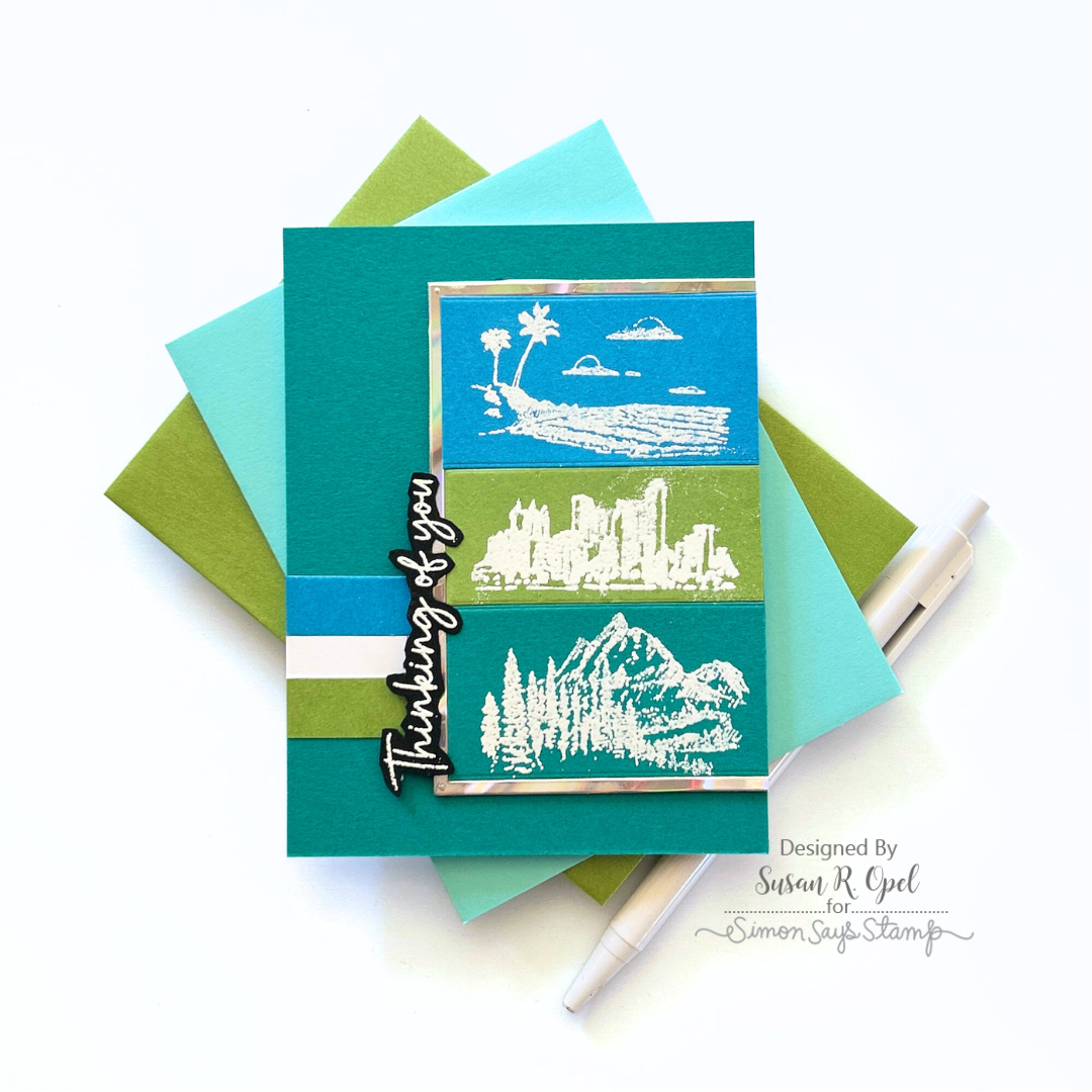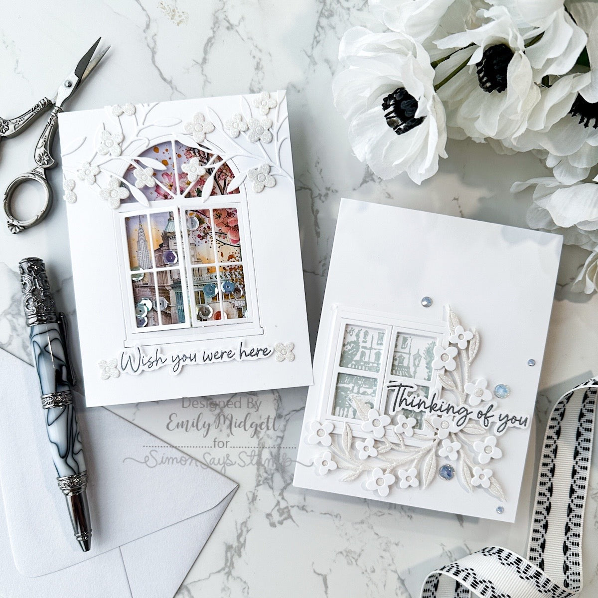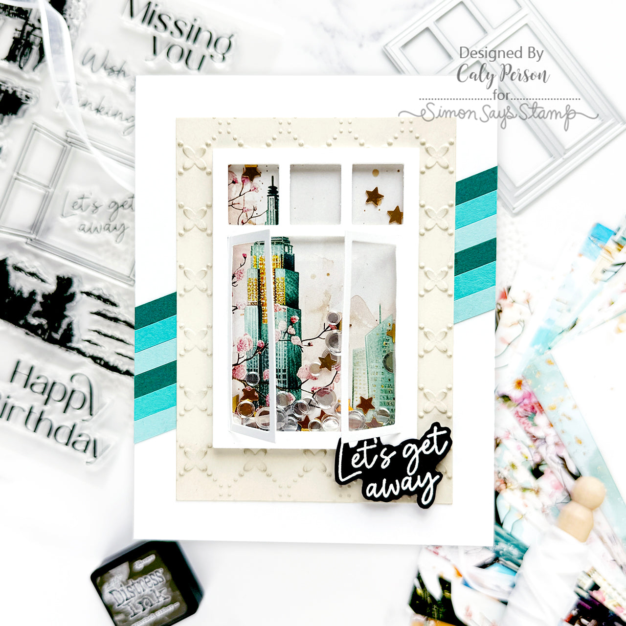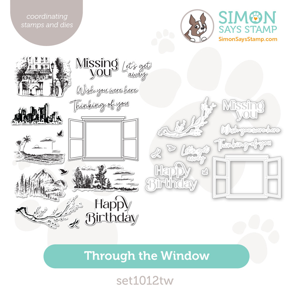 Let your creativity soar with the Simon Says Stamp Through the Window stamp and die set. This versatile collection features a large linear window frame with open casement windows, ready to showcase a wide range of beautiful scenes. The set includes six etched-look scene stamps designed to fit perfectly behind the window: a charming European cafe, a city skyline, a tropical beach, a majestic mountain view, a graceful flowering branch, and a peaceful countryside.