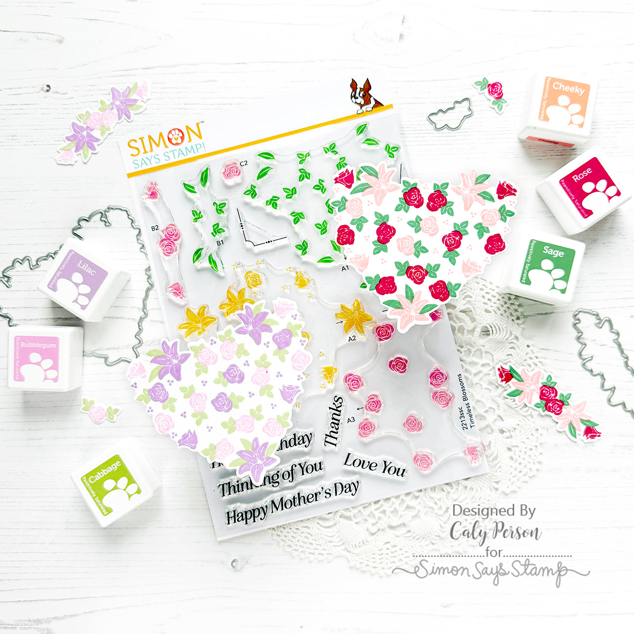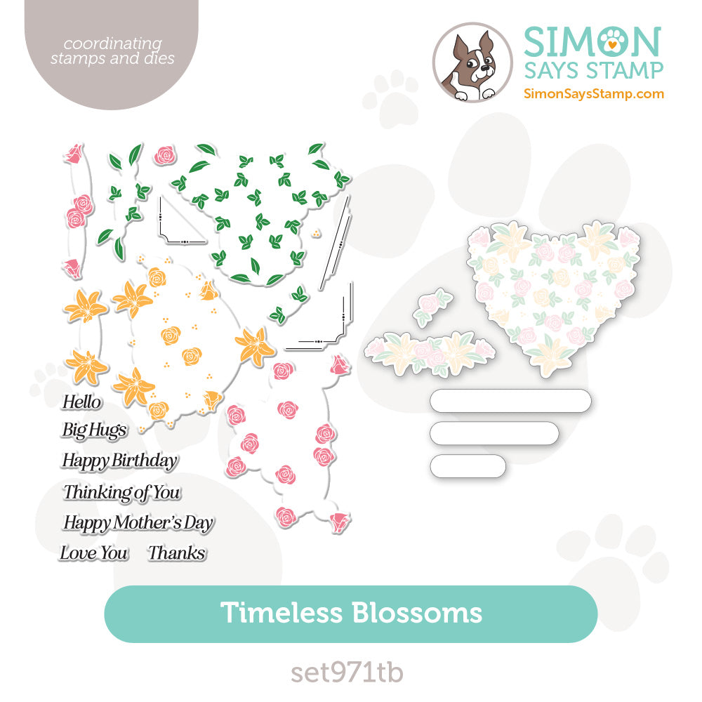 The Simon Says Stamp Timeless Blossoms stamp and die set is a beautiful layering set that lets you build a detailed floral heart and a matching floral swag using three perfectly aligned layers. With separate stamps for large and small flowers and leaves, you can easily mix and match colors for a vibrant, dimensional look.