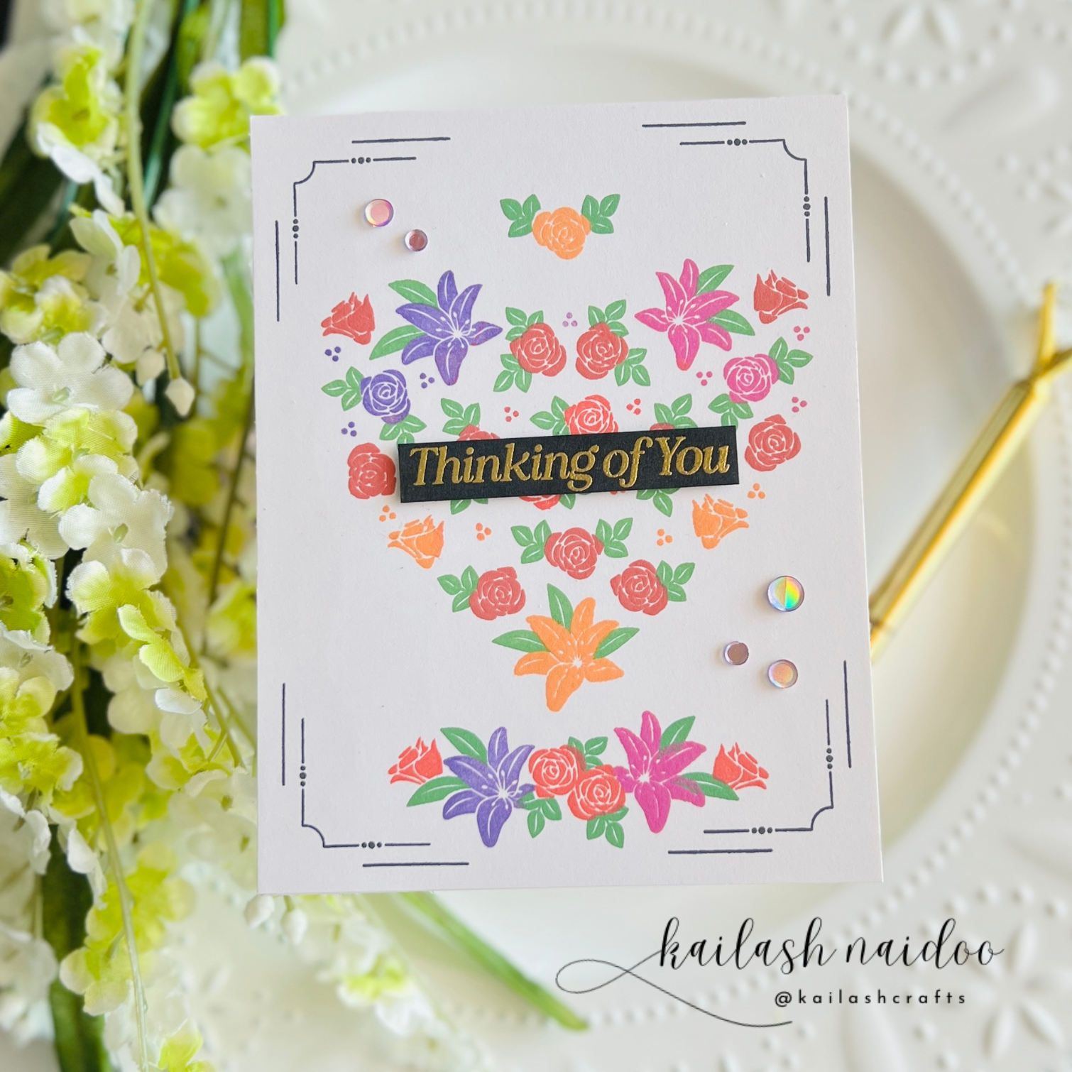 For the large floral heart, arrows give you directions for lining up the stamps. The set also includes classic printer's ornaments to add elegant finishing touches to your cards. Sentiments include: