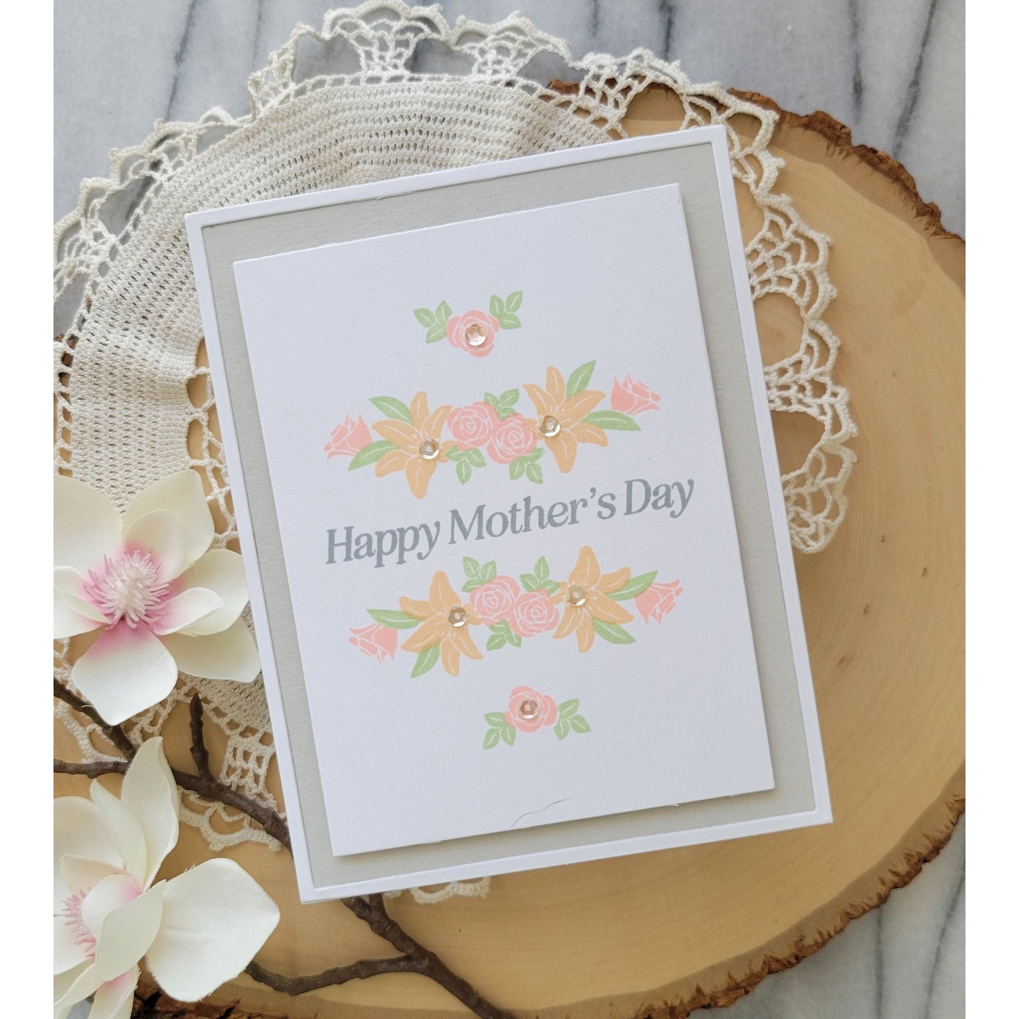 Included are three sentiment strip dies in varying lengths, each with rounded ends that perfectly frame the stamped sentiments. You'll also find dies to cut out the large floral heart, the small floral swag, and a tiny bloom with greenery. Whether you're crafting for love, celebration, or encouragement, this set brings timeless charm to any design.