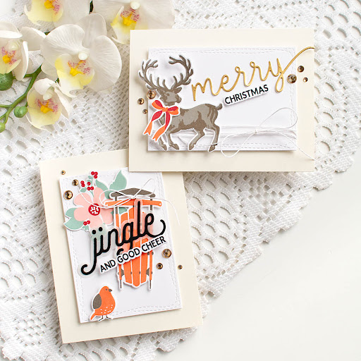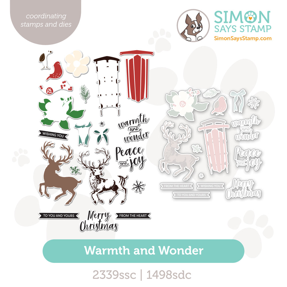 The Simon Says Stamp Warmth and Wonder stamp and dies set brings seasonal beauty to life with elegant layering images and heartfelt sentiments. This versatile collection includes holiday and winter imagery such as a graceful deer, a cozy sled, a delicate floral cluster, a sweet bird, a festive bow, lush greenery, and softly falling snowflakes. Each design can be layered with color to add depth and dimension to your creations.