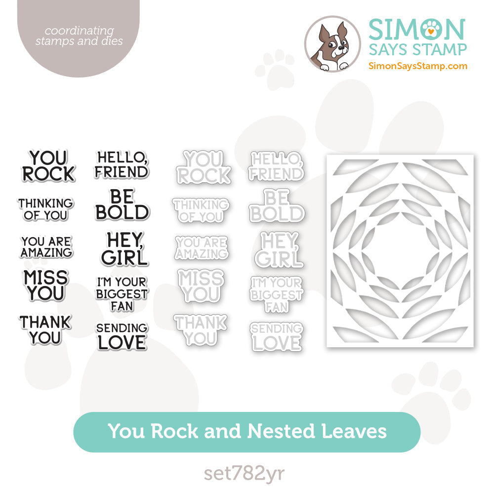 Elevate your crafting projects with the Simon Says Stamp You Rock with Nested Leaves stamp and die set. This versatile collection features bold and simple sentiments perfect for adding a touch of encouragement and positivity to any occasion, along with a background plate that coordinates perfectly with the size of the greetings.