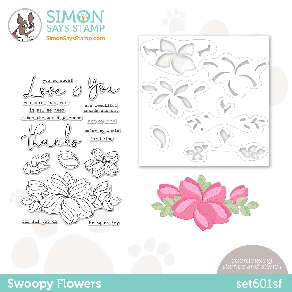 You'll love the modern look of the stylized flowers and leaves on this 4x6 inch clear stamp set! Mix the script and type fonts to create greetings of love, kindness, and gratitude. The coordinating stencil enables you to easily color the images. Complete your set by purchasing the coordinating dies (sssd112739c), too! Simon Says Stamp clear stamps are high-quality photopolymer and made in the USA. Stencil with inks or use with glitz gels, pastes, sprays, markers, journaling pens—you name it!