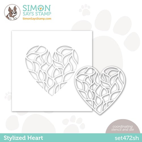 Simon Says Stamp dies are usable in nearly every machine on the market. Use wafer dies on cardstock, felt, fabric, even shrink plastic! You can use wafer thin dies to cut, stencil, emboss and create! Simon Says Stamp clear stamps are high quality photopolymer and made in the USA. This stamp and die set includes the 4 x 4 inch stencil Stylized Heart (ssst221589c) and the Stylized Heart coordinating wafer die set (sssd112501c).