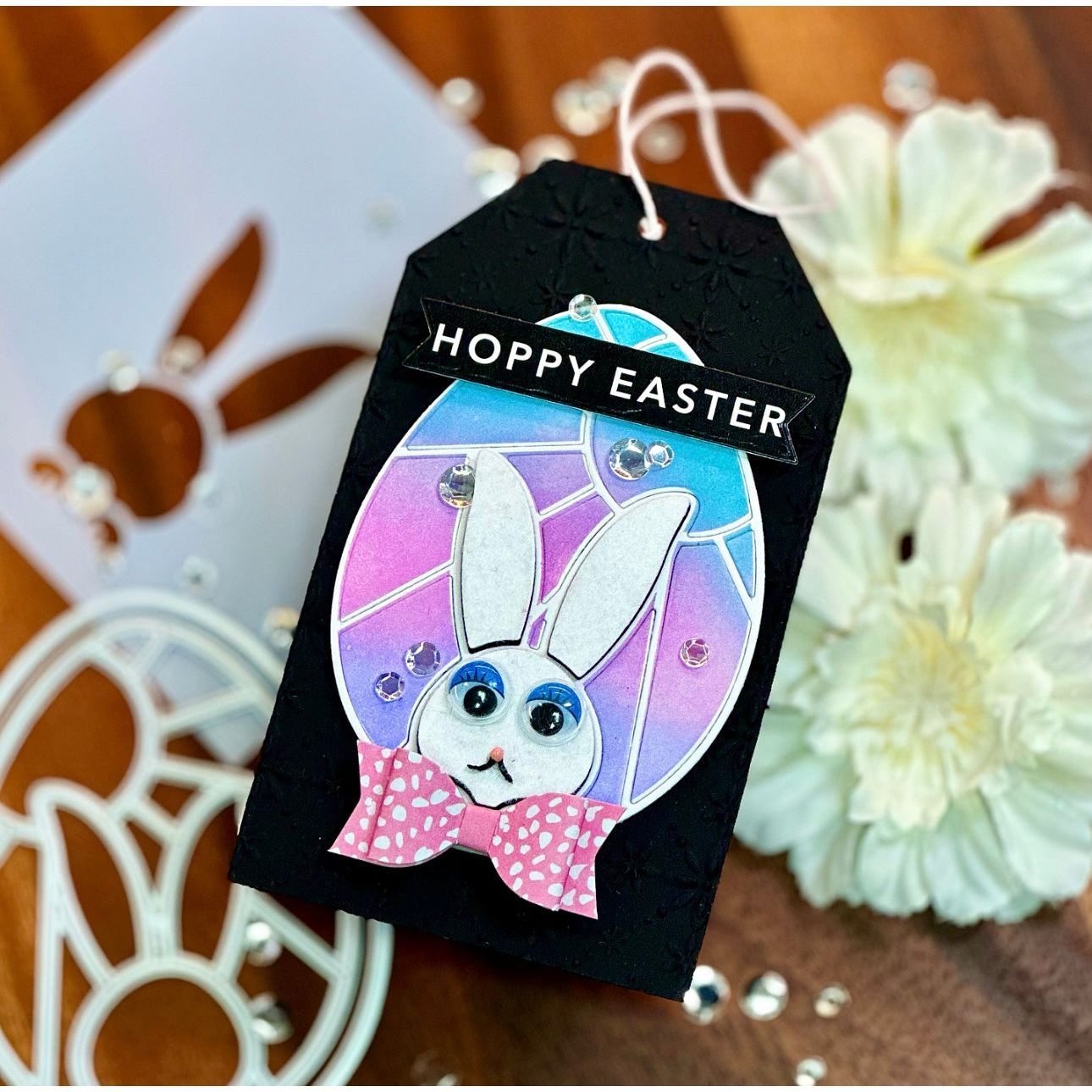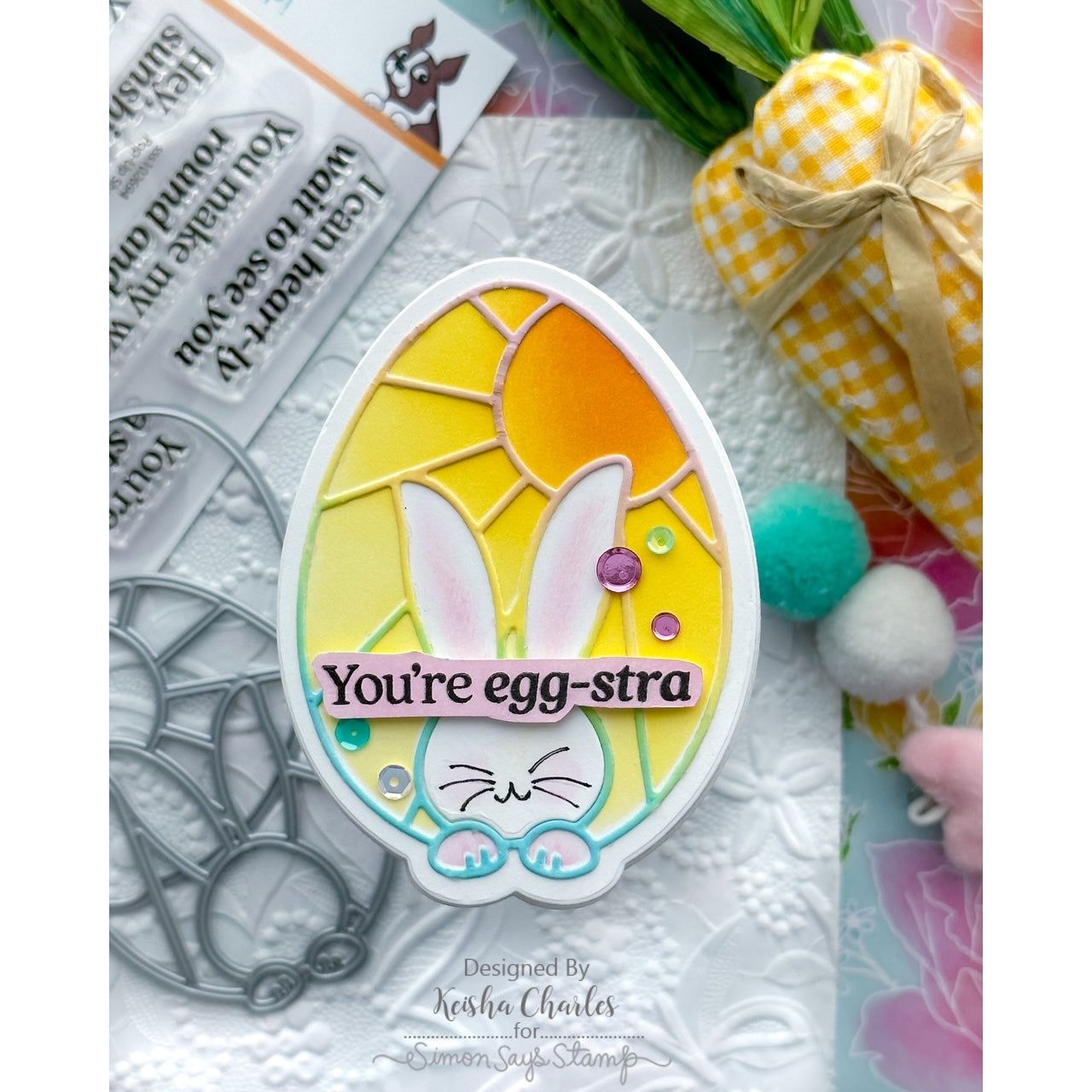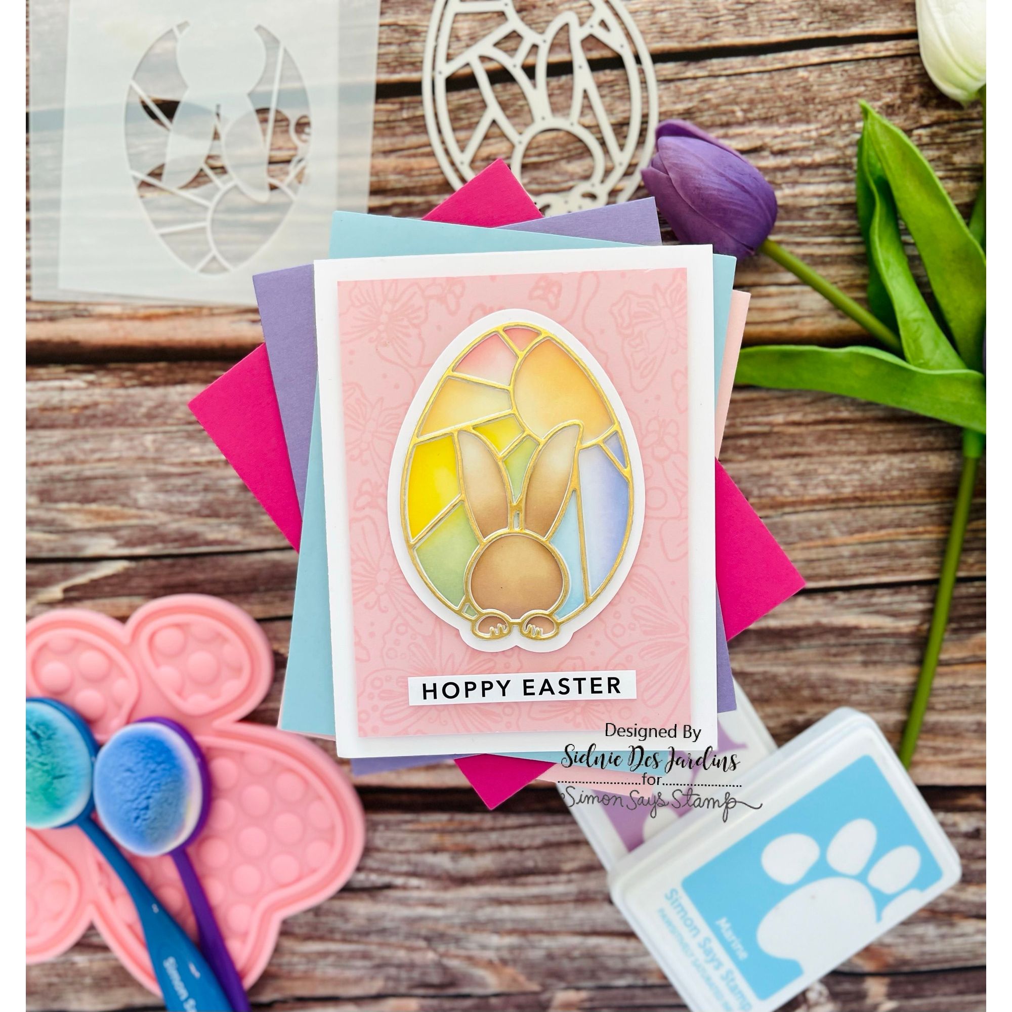 The Simon Says Stamp Bunny Egg stencil and die set provides the perfect way to add a touch of Easter charm to your paper crafting projects! This versatile set features a whimsical bunny and sunshine design within an Easter egg shape, perfect for creating fun and festive elements on cards, scrapbook pages, and more.