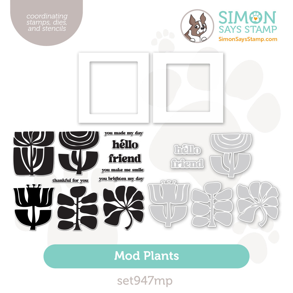 The Simon Says Stamp Mod Plants stamp, stencils, and die set brings a bold and modern touch to your crafting with its striking botanical silhouettes and stylish typography. Featuring a collection of stylized plant designs, this set is perfect for creating clean, graphic compositions that stand out.