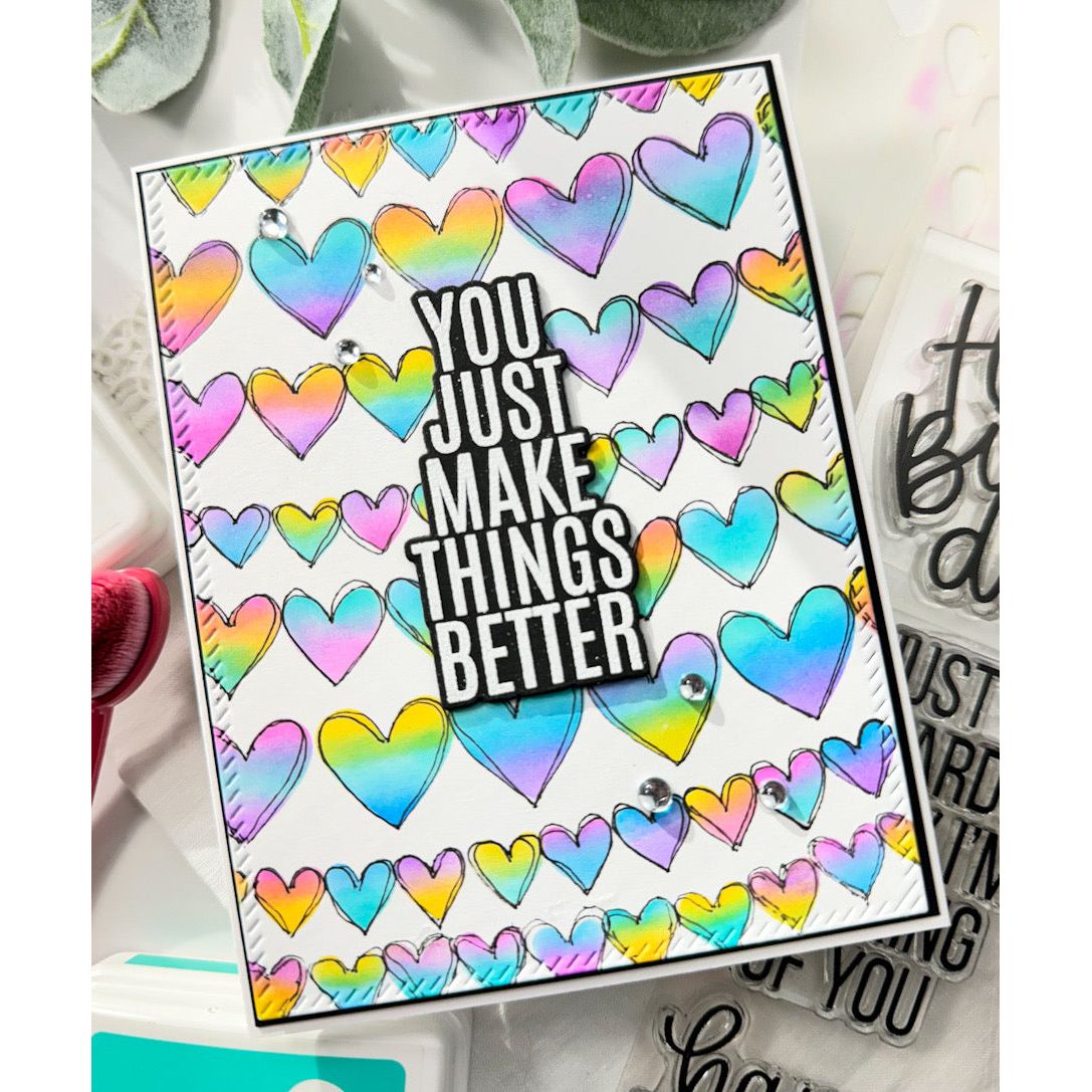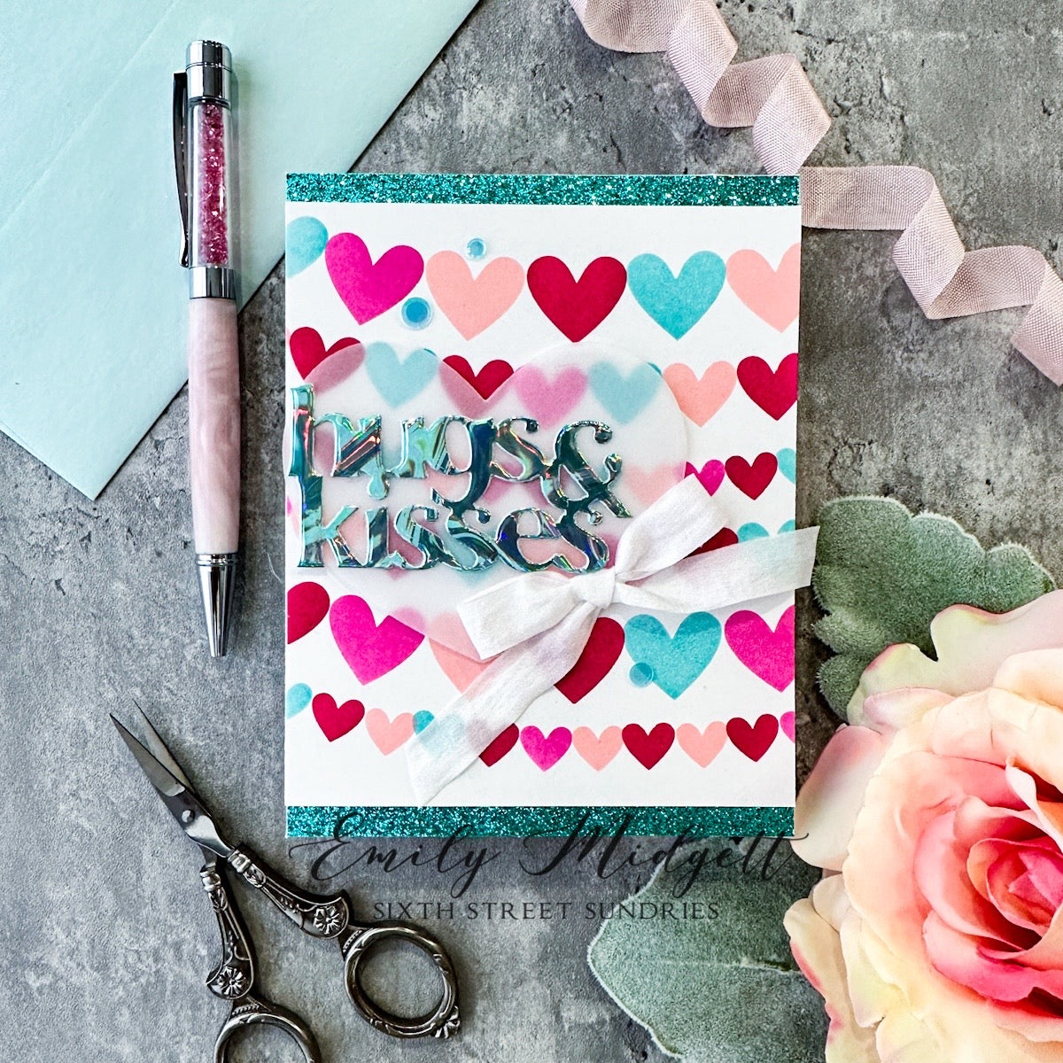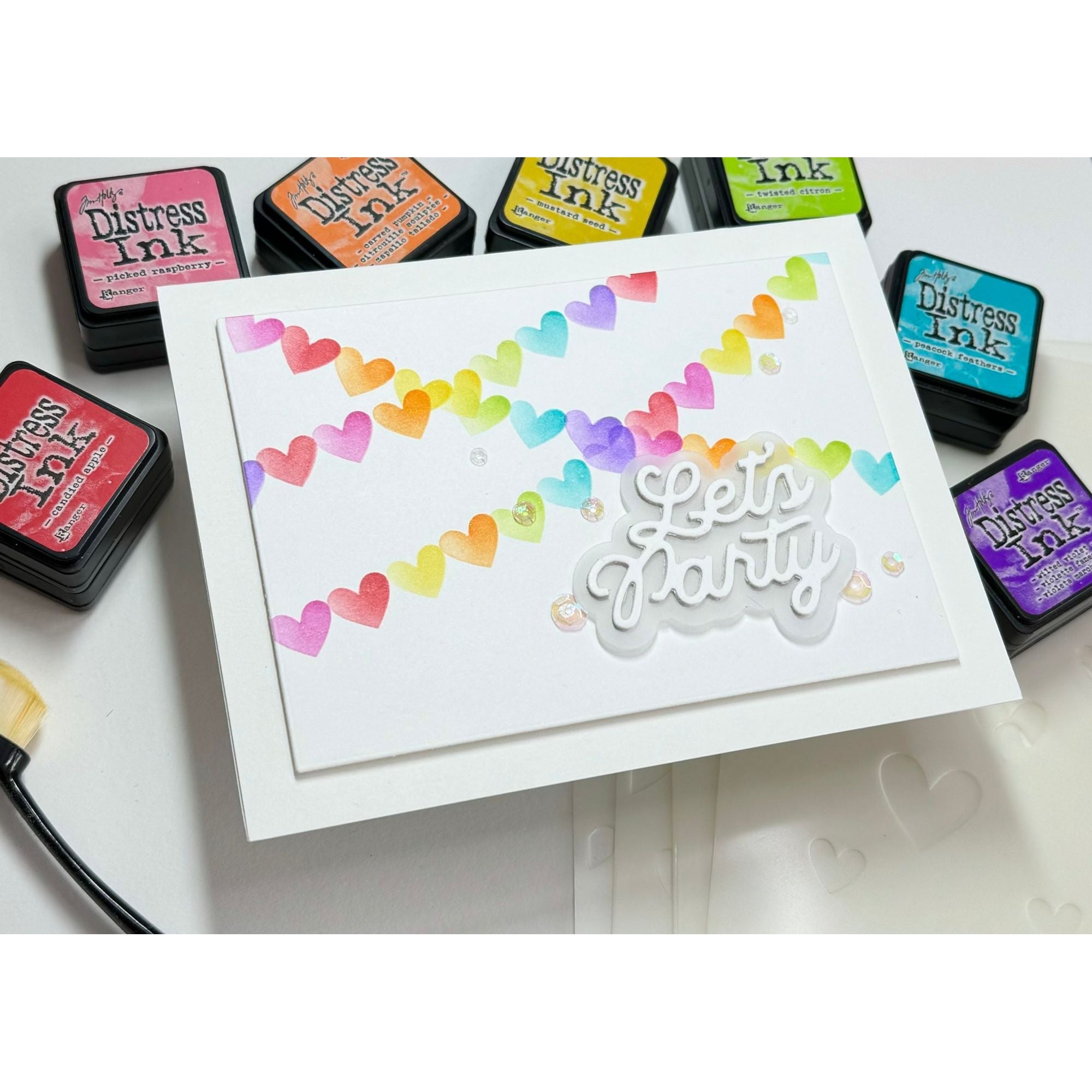 Discover the Simon Says Stamp Heart Banners stencil set, a delightful tool that lets you design charming banners filled with interconnected hearts. This layering stencil set provides you with the creative freedom to craft beautiful and eye-catching heart banners in various sizes and colors.