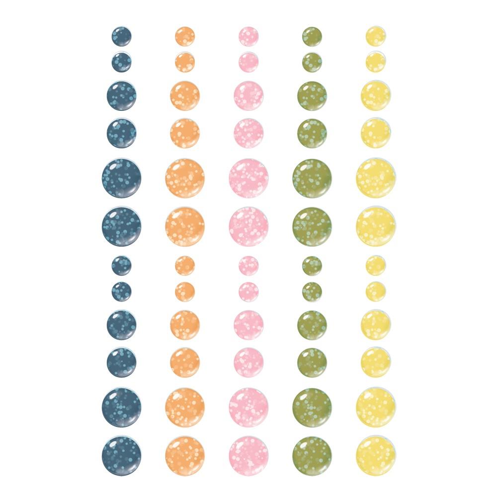 Enhance your paper crafts with Simple Stories Fresh Air Glitter Enamel Dots. Add dimension, color, and style to your projects with 60 pieces in 5 vibrant colors and 3 different sizes. Perfect for greeting cards, scrapbook pages, and more. Pack measures 3.75 x 5.25 inches and colors include: blue, orange, pink, green, and yellow.