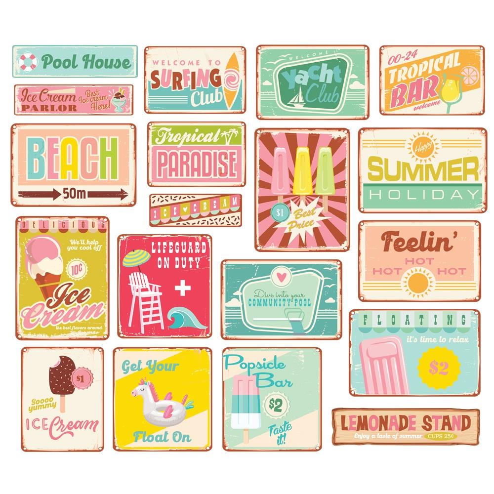 With their versatile size, these cardstock pieces can be easily incorporated into any project. They are perfect for creating focal points on scrapbook layouts or as eye-catching accents on handmade cards. Whether you're embellishing a photo album of your summer adventures or documenting a special beach getaway, these Retro Summer Sign Bits And Pieces offer endless creative possibilities.