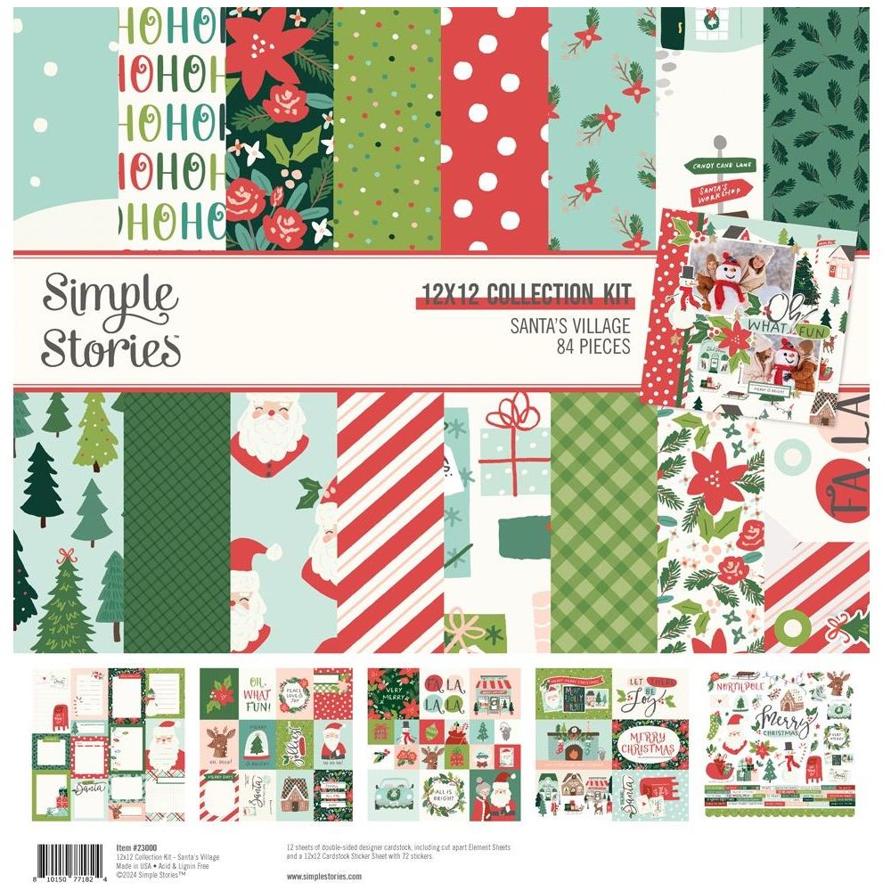 Elevate your scrapbooking and paper crafts with Simple Stories Santa's Village Collection Pack! This 12x12 inch kit includes 12 double-sided 65lb. cardstock sheets, featuring festive imagery such as Santa Claus, Christmas trees, and holiday decorations. With 72 stickers and 84 pieces, this pack is perfect for creating personalized greeting cards, bookmarks, and more. Add a touch of holiday spirit to all of your projects with this versatile kit.