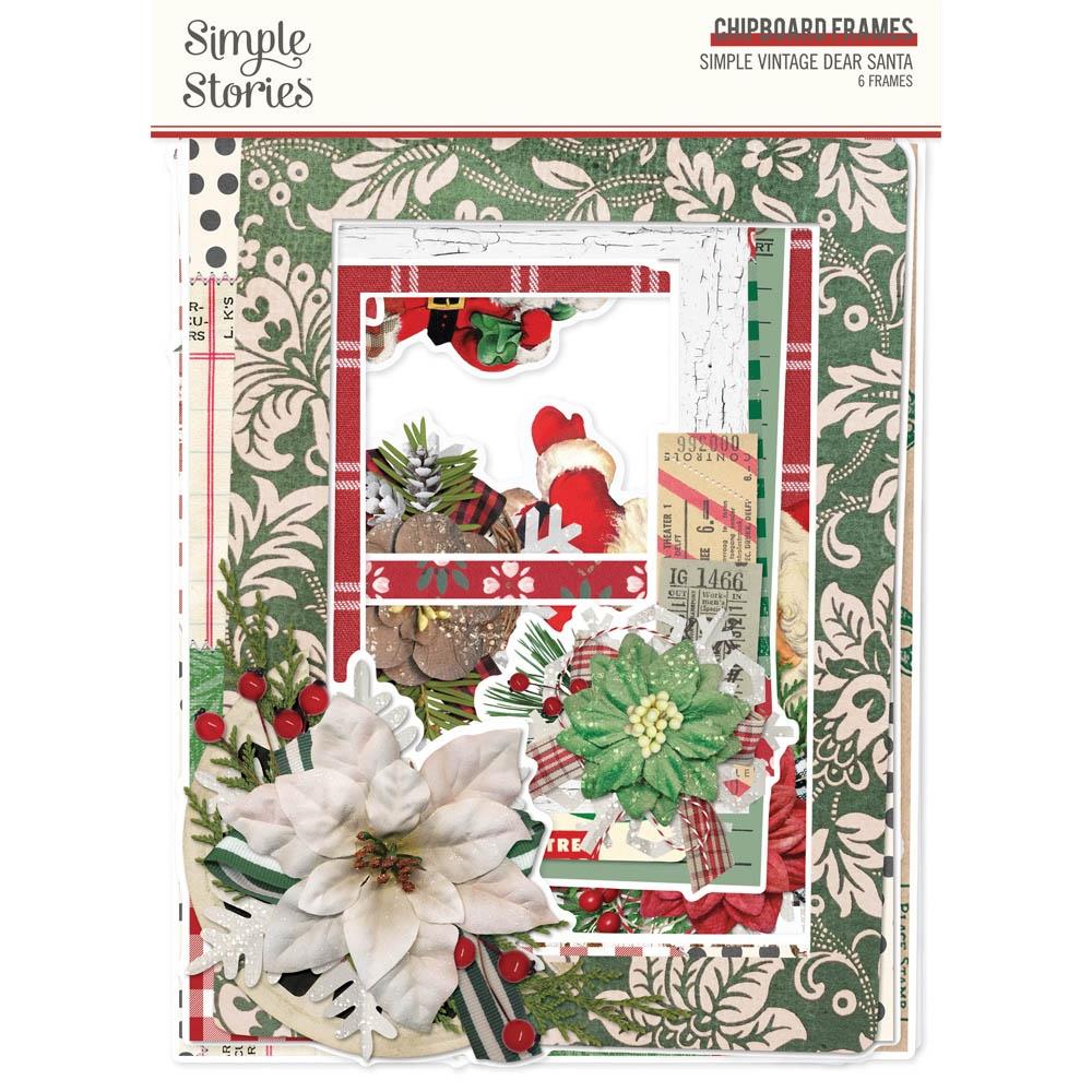 Add a touch of sweet nostalgia to your craft projects with the Simple Stories Vintage Dear Santa Chipboard Frames. This set of 6 frames feature a timeless wintery design, perfect for greeting cards, scrapbooks, and other paper crafts. Made of sturdy chipboard, they provide a decorative accent along with lasting durability. Pack measures approximately 6.2 x 8.8 inches.