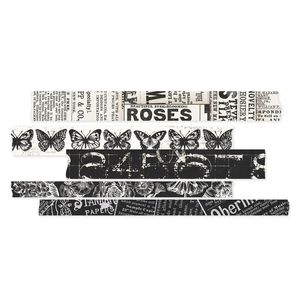 The Simple Stories Vintage Essentials Washi Tape opens up a world of creativity with its black and white color scheme. Its designs encompass a range of classic and nostalgic elements, including newsprint, flowers, butterflies, numbers, and advertisements. These captivating images and themes add a touch of vintage charm to any project, making it ideal for those who appreciate a retro aesthetic.