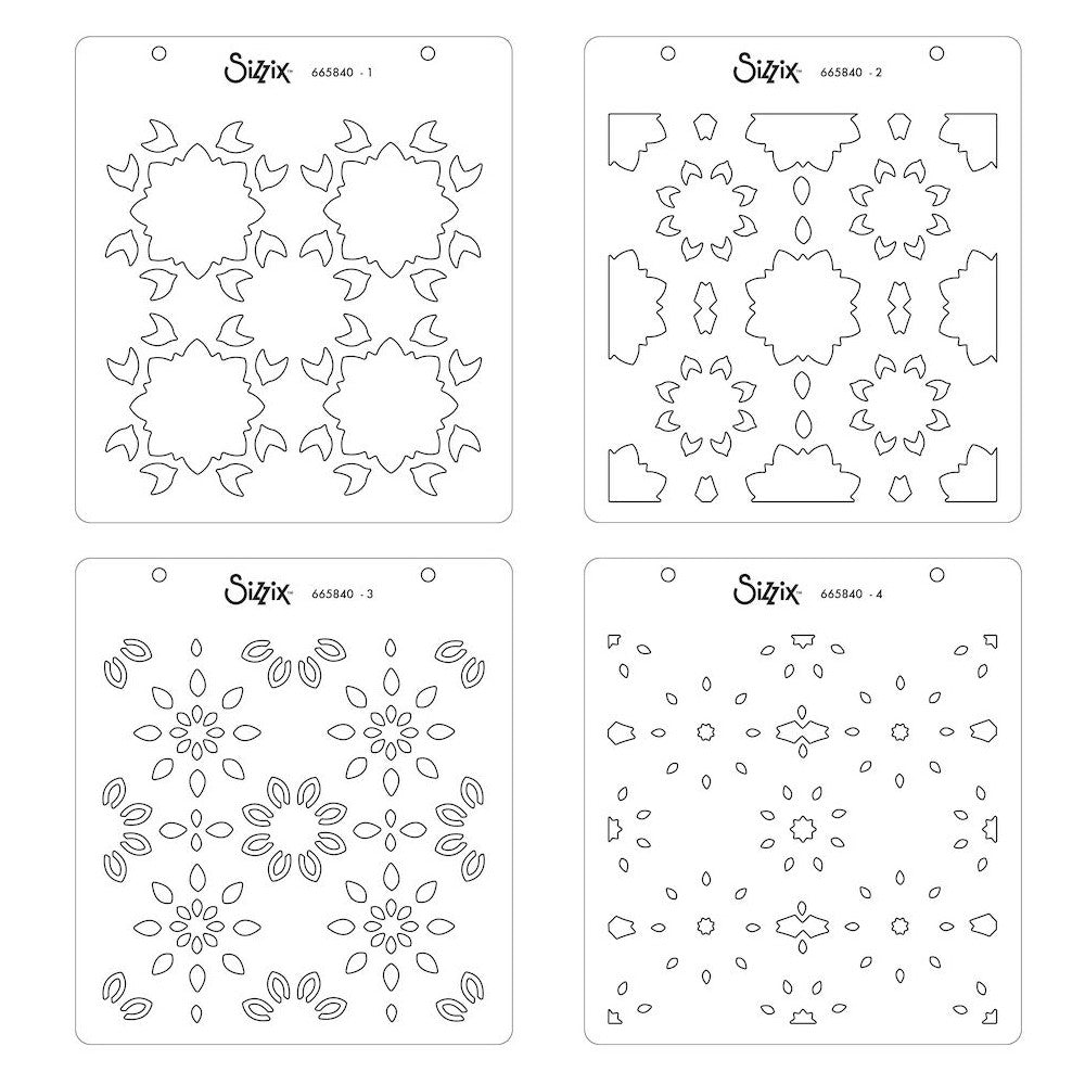 The stencil set includes four 6x6-inch stencils, and you can use them to create a beautiful geometric floral background. Sizzix is an Ellison brand, which is known for producing high-quality crafting tools and accessories.