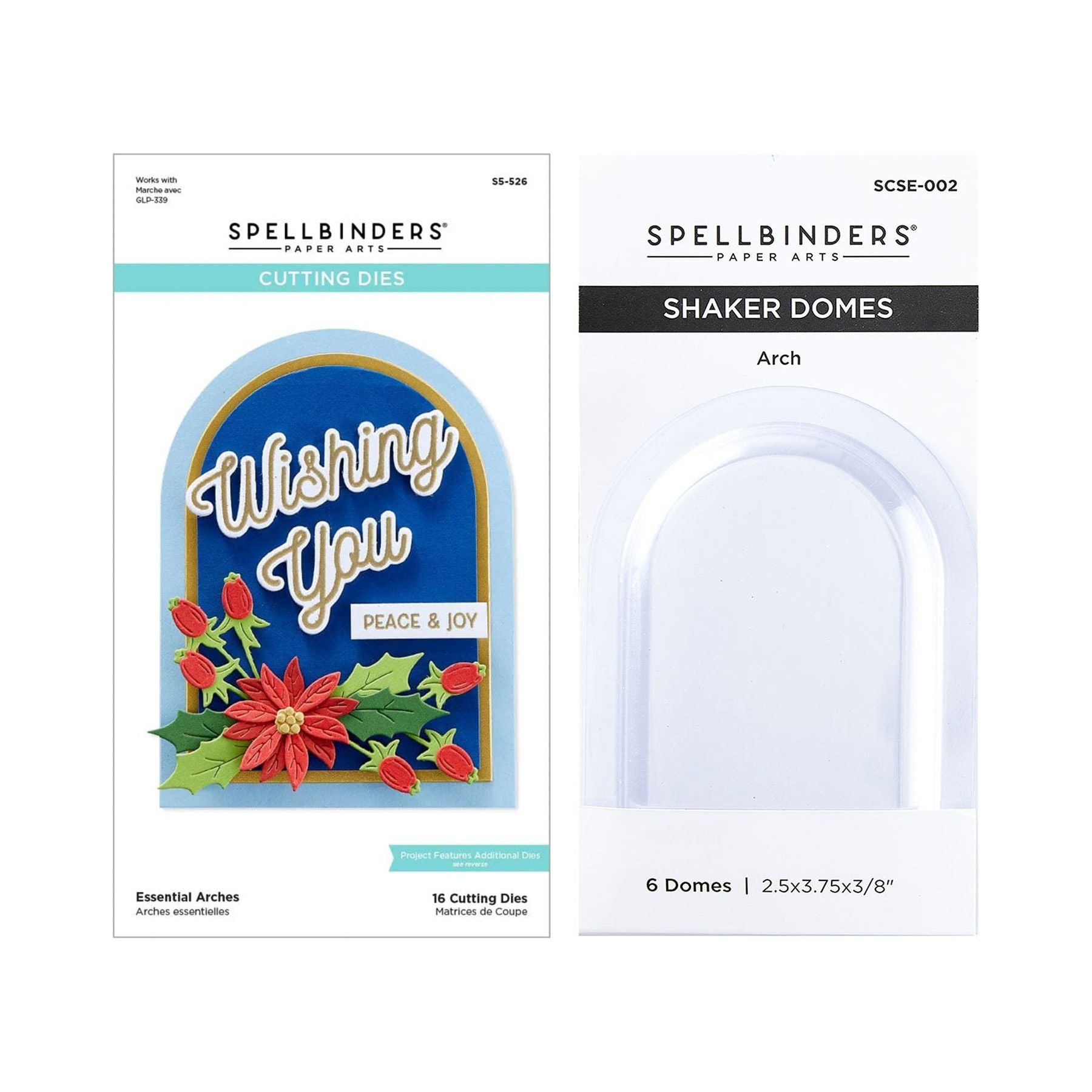 The Spellbinders Arch Shaker and Dies Bundle includes the Essential Arches Etched Die Set (S5-526) and Arch Shaker Domes (SCSE-002). The die set features 16 etched dies that cut out a classic arch shape, with heights ranging from 1 inch to 5.5 inches, offering versatile layering options. The shaker domes, with a raised area of 0.25 inches, are perfect for filling with chunky glitter, shaker mixes, and more, adding dimension and interactivity to your projects. Use these domes to enhance cards, scrapbook layouts, home décor, and more.
