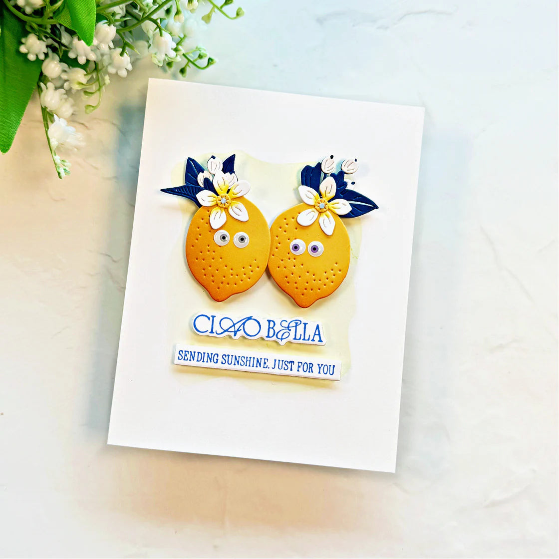 Spellbinders Citrus Spritz Etched Dies are part of the vibrant La Dolce Vita Collection and bring a burst of fresh, summery charm to your crafting. This set includes 10 thin metal cutting dies that, when assembled, create a bold lemon surrounded by detailed leaves, delicate blooms, and budding flowers. Perfect as a focal point for cards, scrapbook pages, journal spreads, and more, this elegant citrus cluster adds a refreshing touch of nature and sunshine to any project.