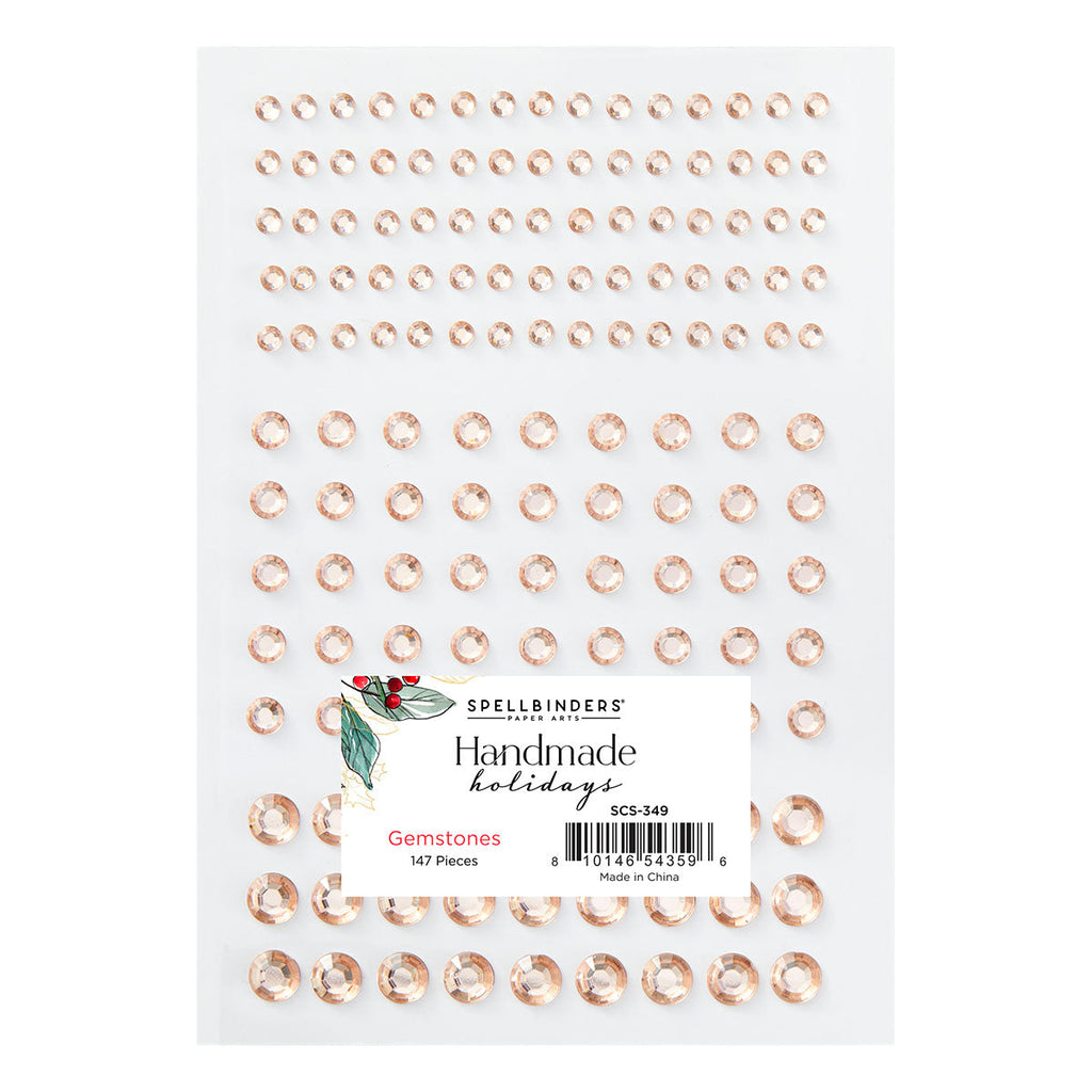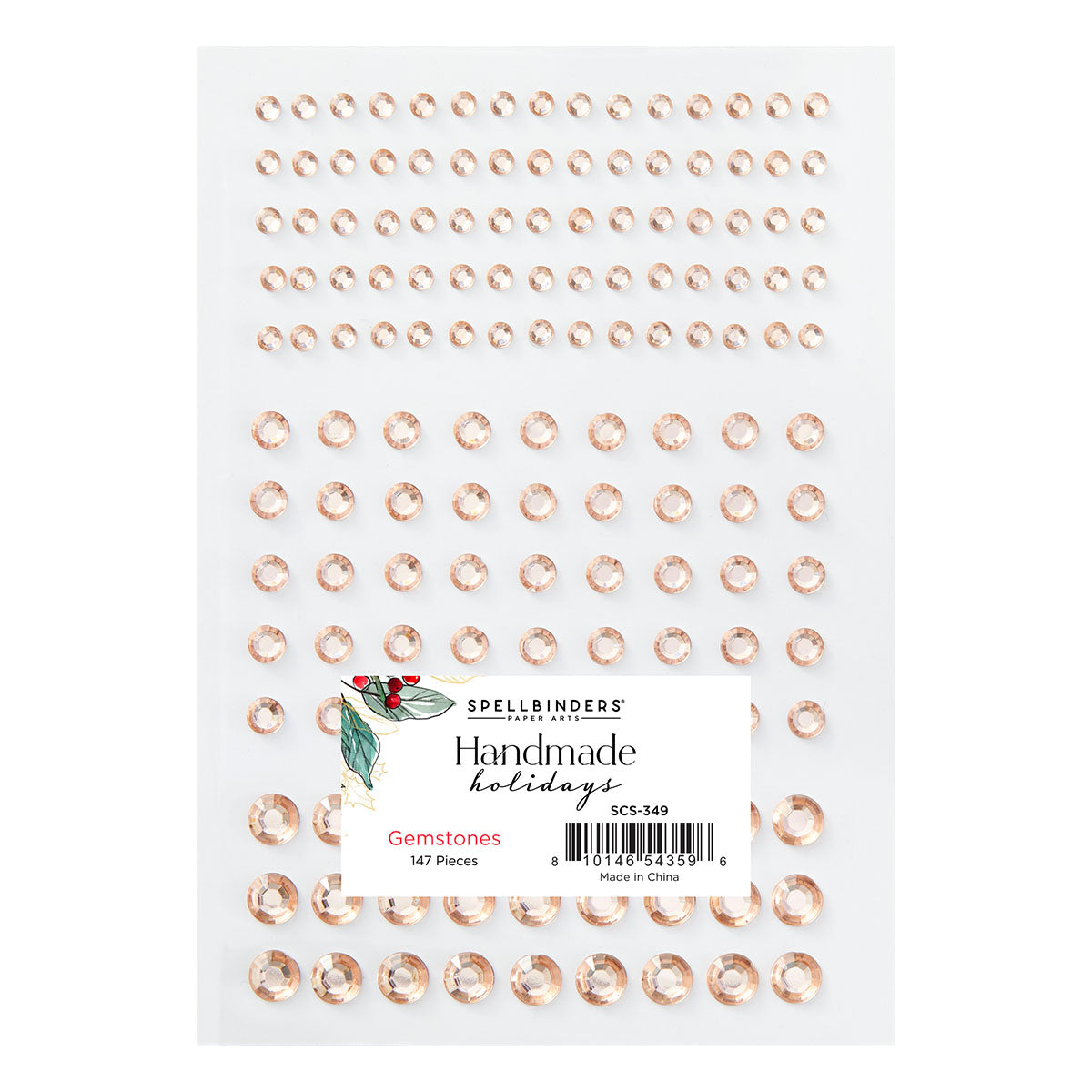 The Spellbinders Handmade Holidays Gemstones are part of the Handmade Holidays Christmas Kit (bd-0852) and are available as an add-on option. This pack contains 147 self-adhesive gems on a sheet, providing a beautiful addition of holiday sparkle for your paper crafting needs.