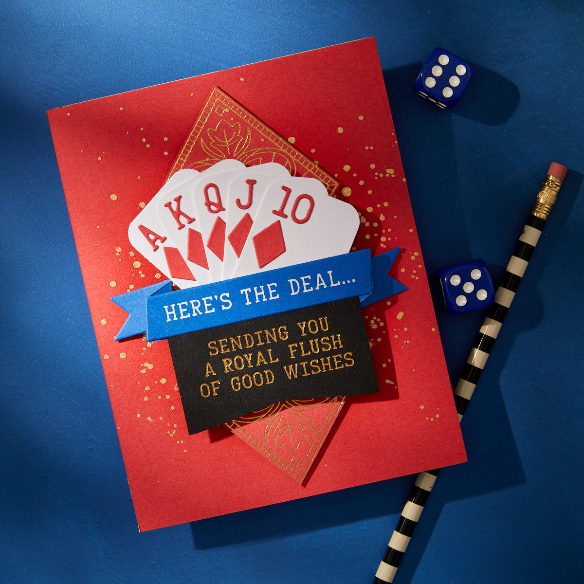 The Pip & Rank Etched Dies set includes five thin metal cutting dies to create individual accents or a complete deck of cards. The set features a heart, spade, diamond, and club, along with numbers 0–9 and the letters A for Ace, J for Jack, Q for Queen, and K for King. Perfect for personalizing playing cards or crafting unique projects, this bundle offers endless creative possibilities.