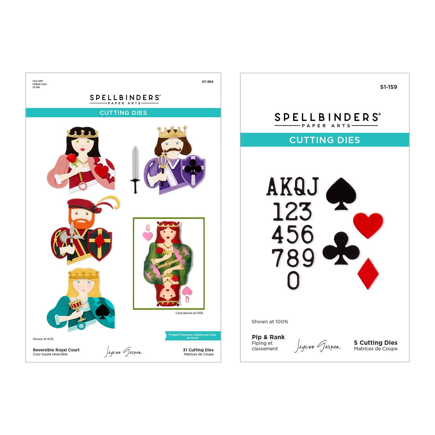 Spellbinders Jack of All Trades Bundle includes Reversible Royal Court Etched Dies (S7-266) and Pip & Rank Etched Dies (S1-159), both designed by Jaycee Gaspar.