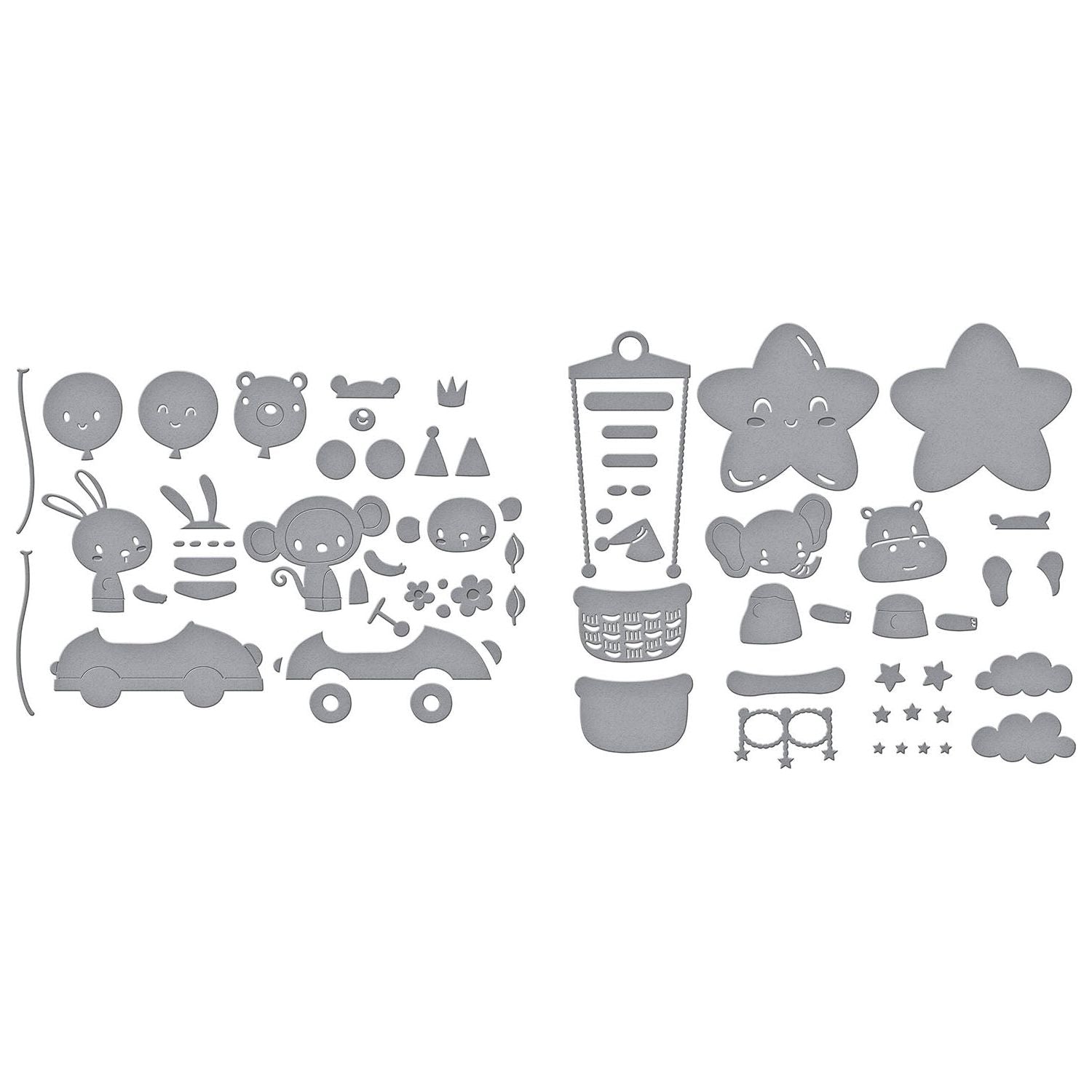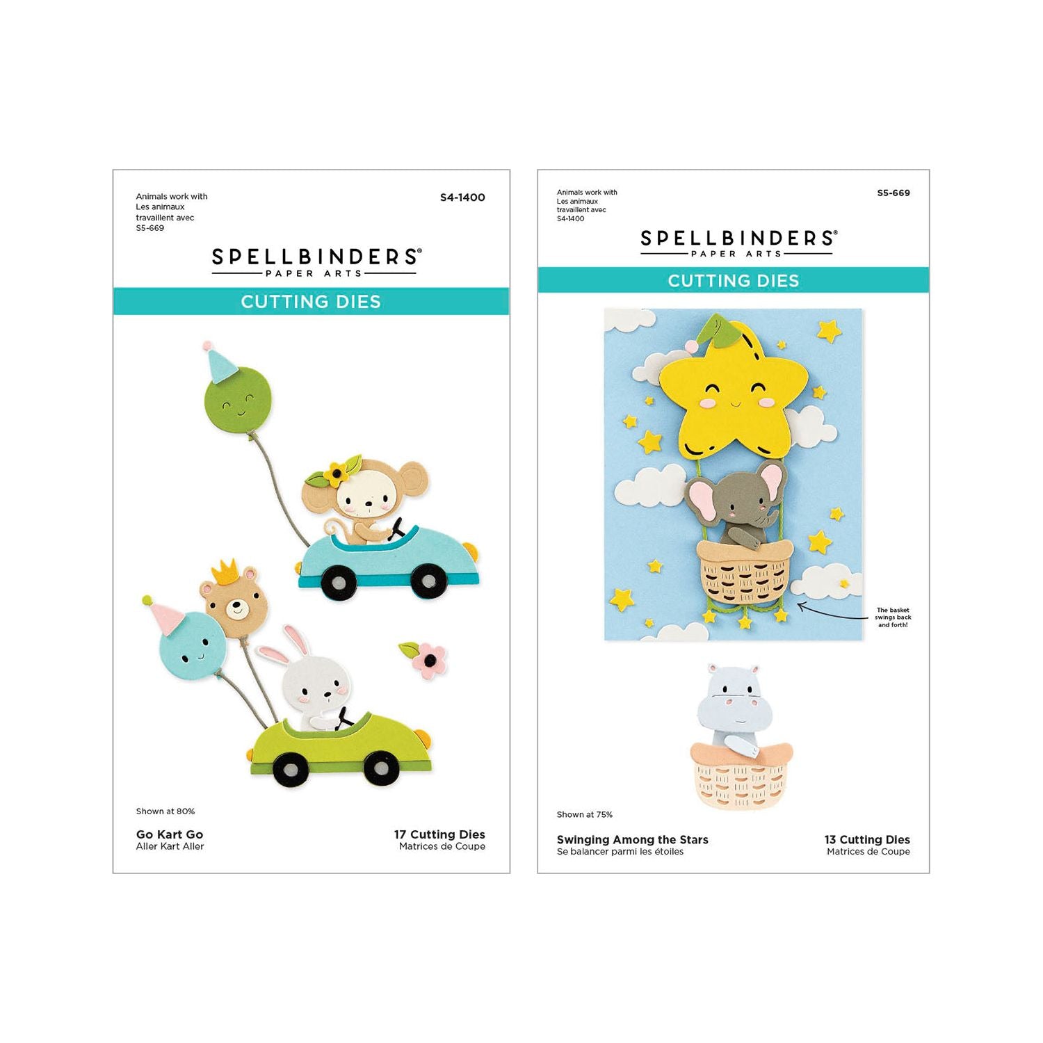 Spellbinders Little Smiles Animal Dies Bundle includes the Go Kart Go Etched Dies (S4-1400) and Swinging Among the Stars Etched Dies (S5-669), both from the Little Smiles Collection.