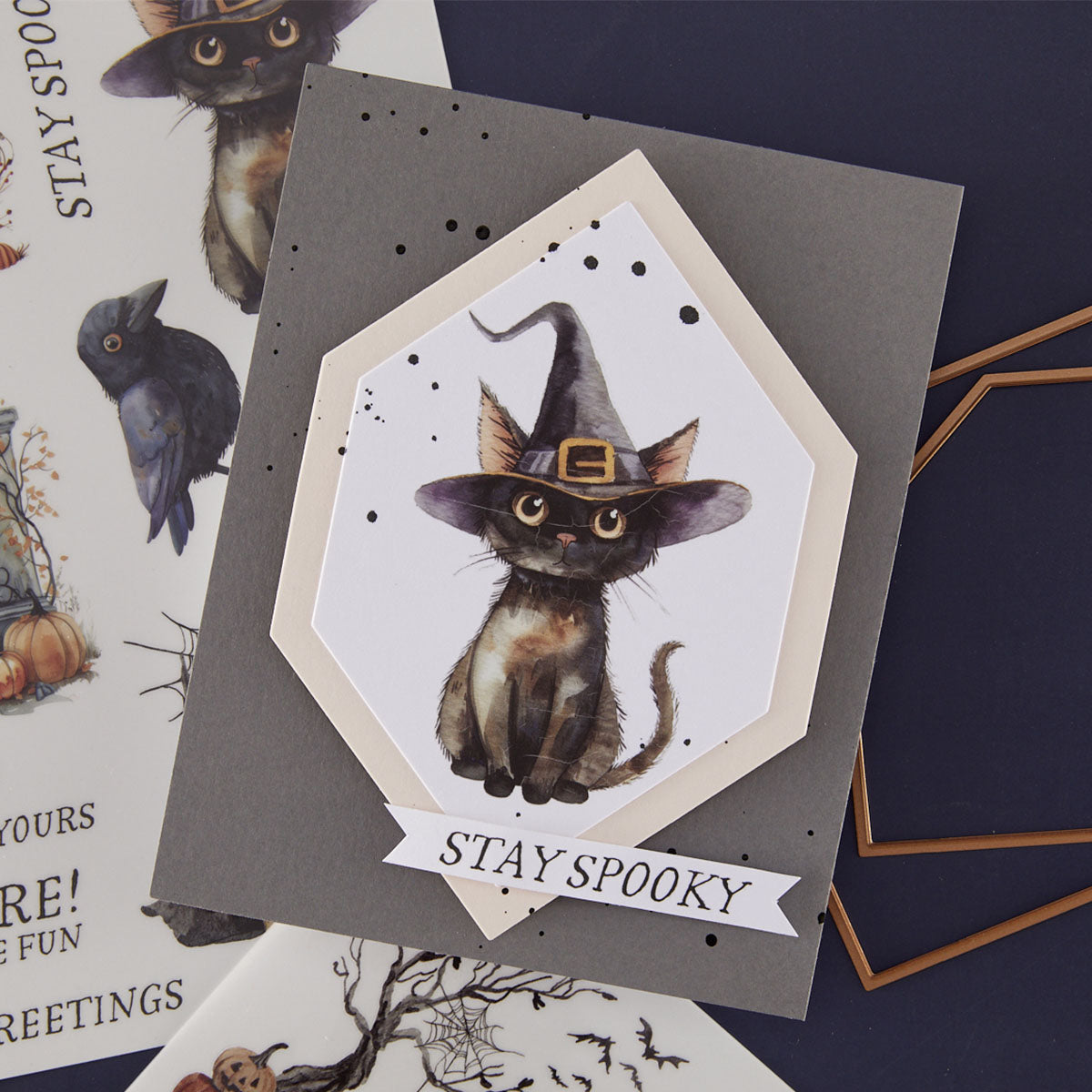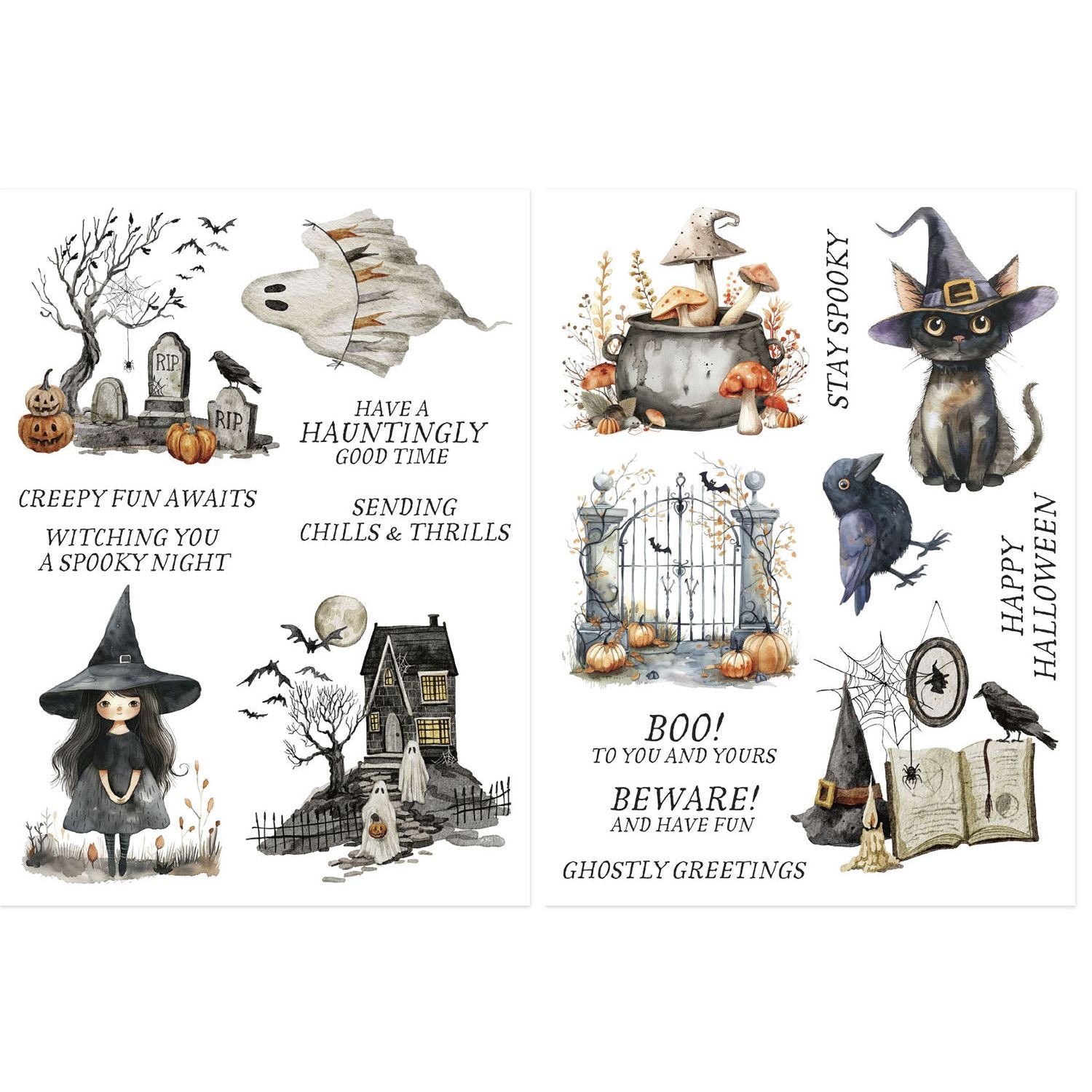 Spellbinders Stay Spooky Rub-On Sheets are part of the Simply Made Collection. This spooky illustrated set includes two 6 x 8-inch sheets of vibrant, high-quality rub-on transfers featuring 18 unique images and sentiments. Designs include ghosts, a cauldron of mushrooms, a cemetery, trees, bats, cobwebs, jack-o'-lanterns, a haunted house, a witch, a full moon, a spellbook, birds, a cat, and a wrought iron gate. Sentiments include "Happy Halloween," "Stay Spooky," "Boo! to you and yours," "Beware and have fun," "Ghostly greetings," "Sending chills & thrills," "Have a hauntingly good time," "Creepy fun awaits," and "Witching you a spooky night." These rub-ons are ideal for adding a seamless, hand-drawn look to your scrapbook layouts, cards, and journals—offering effortless embellishing with polished, professional results.