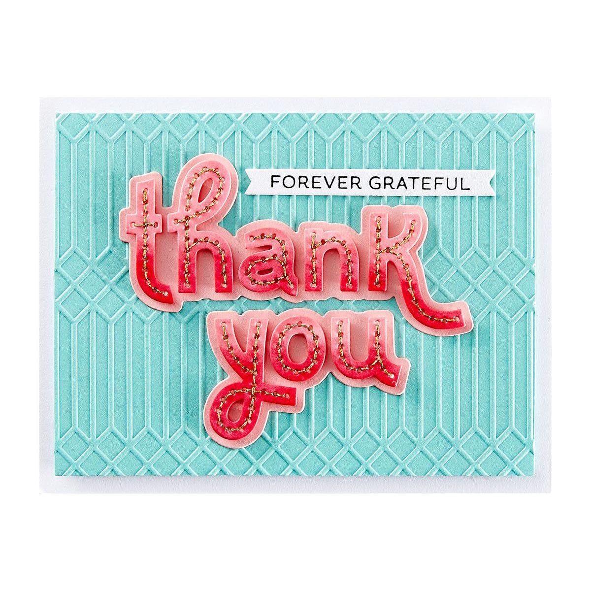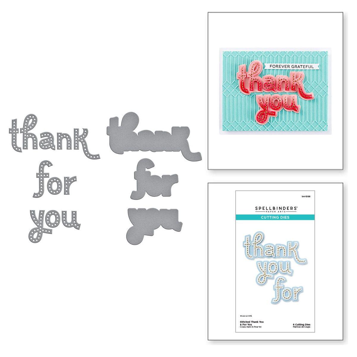 Spellbinders Stitched Thank You & For You Etched Dies, part of the Out and About Collection, offer a delightful way to express gratitude with this set of six wafer-thin metal cutting dies. Each die features a lowercase casual font with pinpoint or stitching designs, perfect for threading embroidery floss or leaving as-is. Use these versatile dies individually to create heartfelt sentiments or combine them with their outlines for a bold and impactful look.