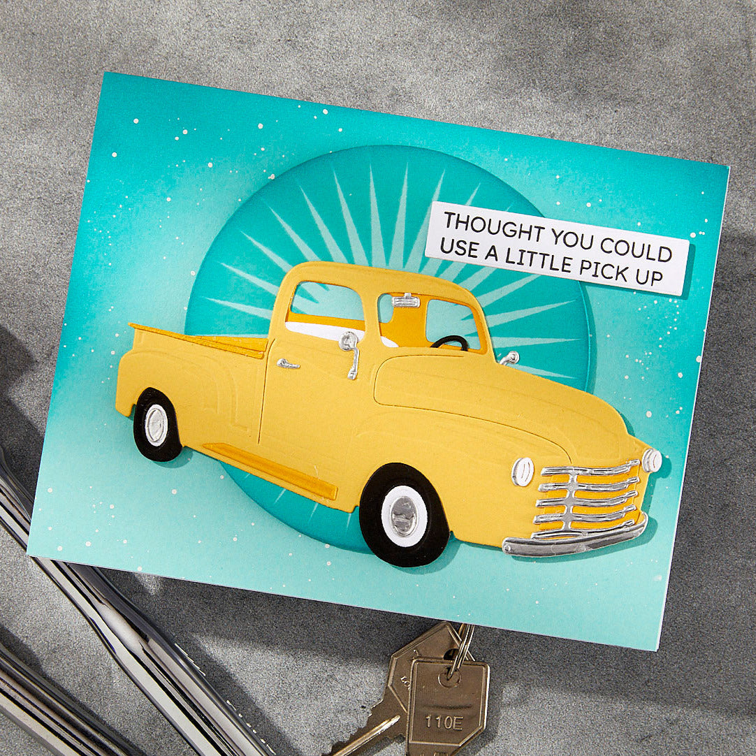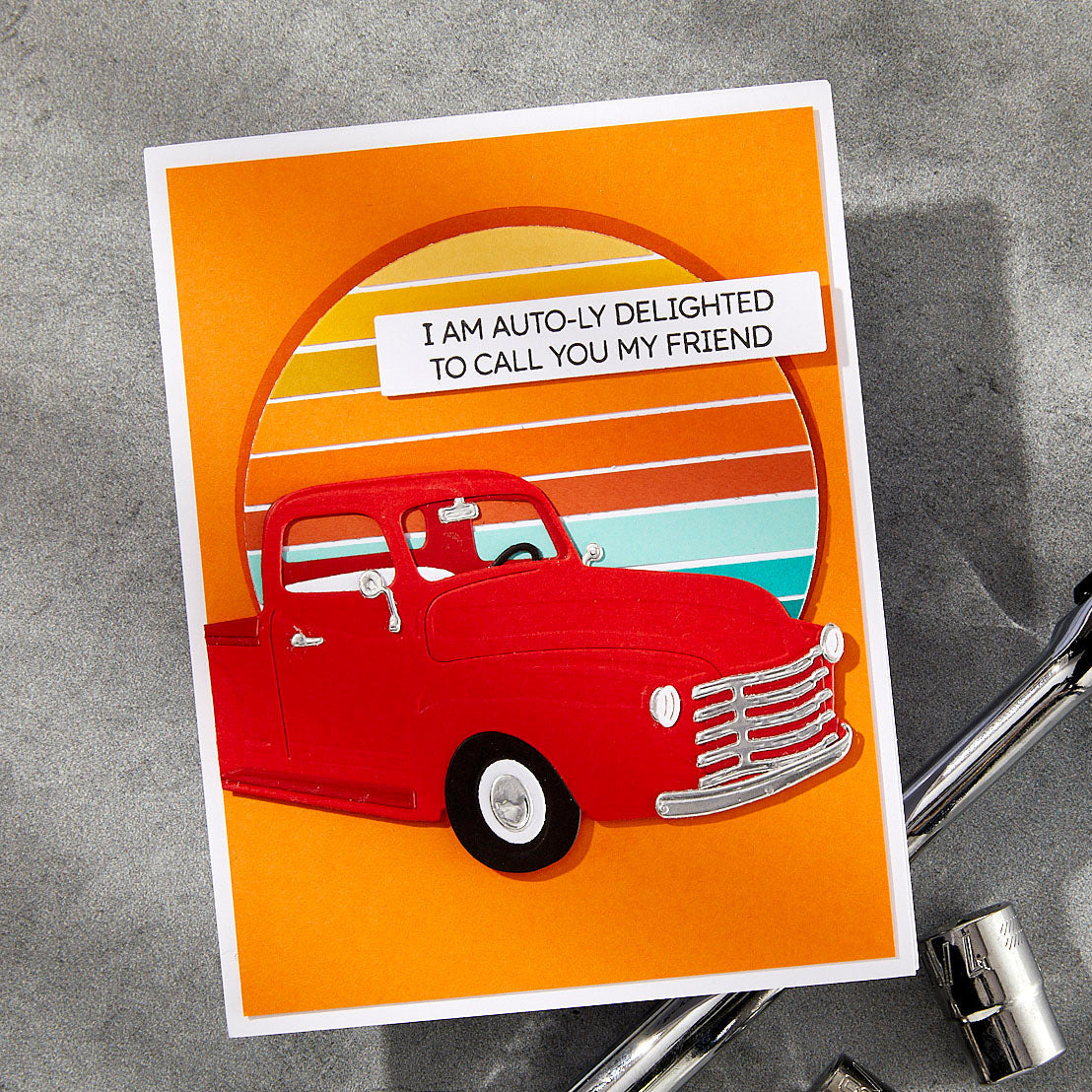 The Timeless Truck Etched Dies, from the Classic Road Legends Collection by Mindy Eggen, include 14 thin metal cutting dies that assemble into a charming vintage-style pickup truck. Full of nostalgic detail, this classic truck evokes memories of open roads and simpler times—turning even a drive down the street into an adventure. The finished design measures approximately 4.70 x 2.47 inches (11.90 x 6.30 cm), making it an ideal focal point for cards, scrapbook layouts, and masculine-themed projects. A perfect choice for classic car fans and those hard-to-create masculine designs. Compatible with most die-cutting machines.
