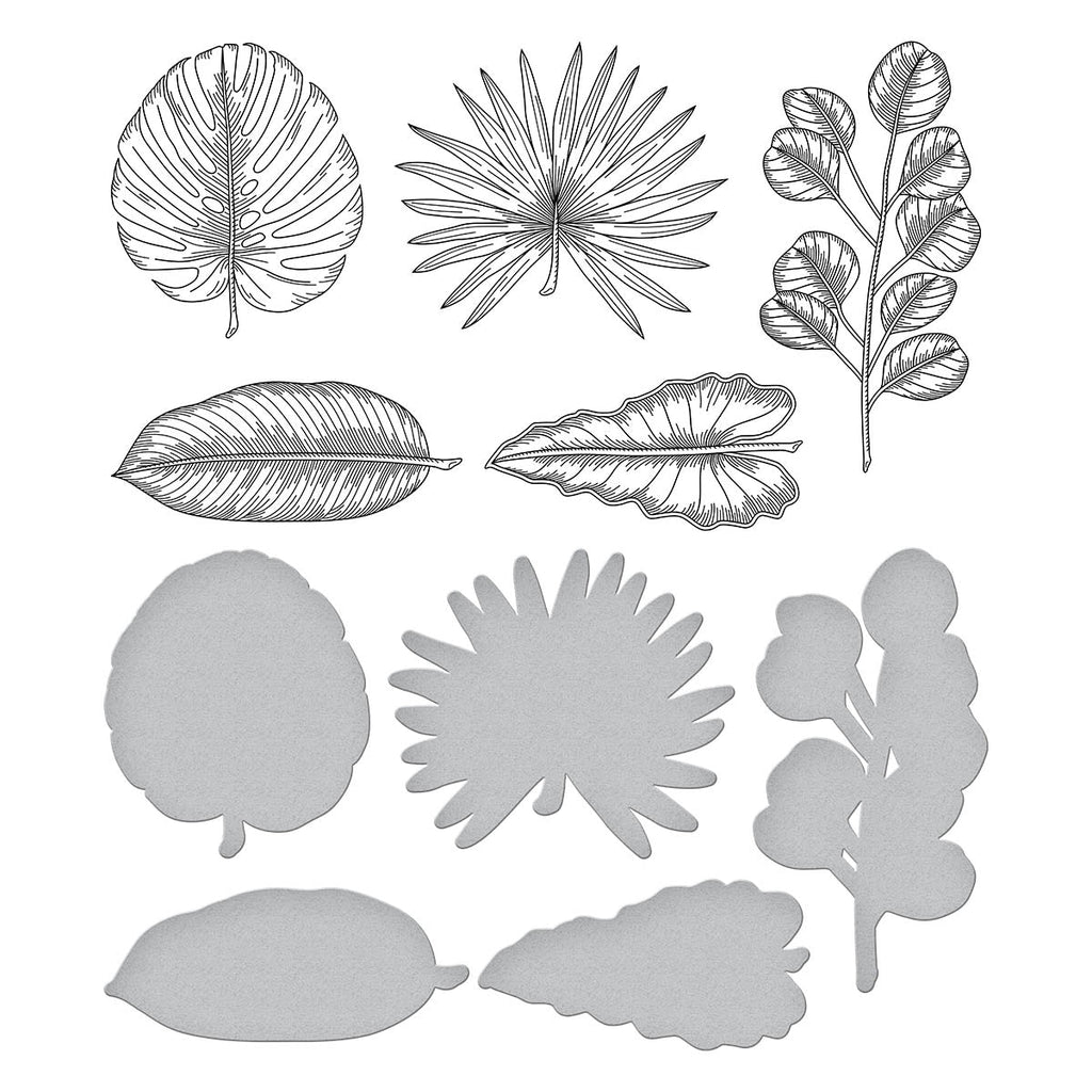 The Spellbinders Tropical Leaves Press Plate and Die Set from the Propagation Garden Collection by Annie Williams offers a set of five press plates and coordinating dies, perfect for those with a green thumb! Featuring five different leaves from traditional tropical houseplants, you can create beautiful stationery with a summery and fun feel. Ink the plates with the BetterPress Ink to be pressed against the BetterPress Cotton Card Panel and Sheets for a crisp letterpress design.