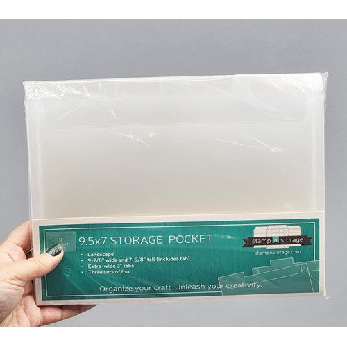 Do you prefer storing your Stamp-n-Storage Magnet Cards in a clear pocket for labeling? How about Stamp Cards? The 9.5x7 Storage Pockets are designed to hold 9.5 x 7 Magnet Cards and 9.5 x 7 Stamp Cards. Each pack includes twelve Storage Pockets with tabs for easy labeling. Labels are not included with pockets. Avery label 5167 are recommended.