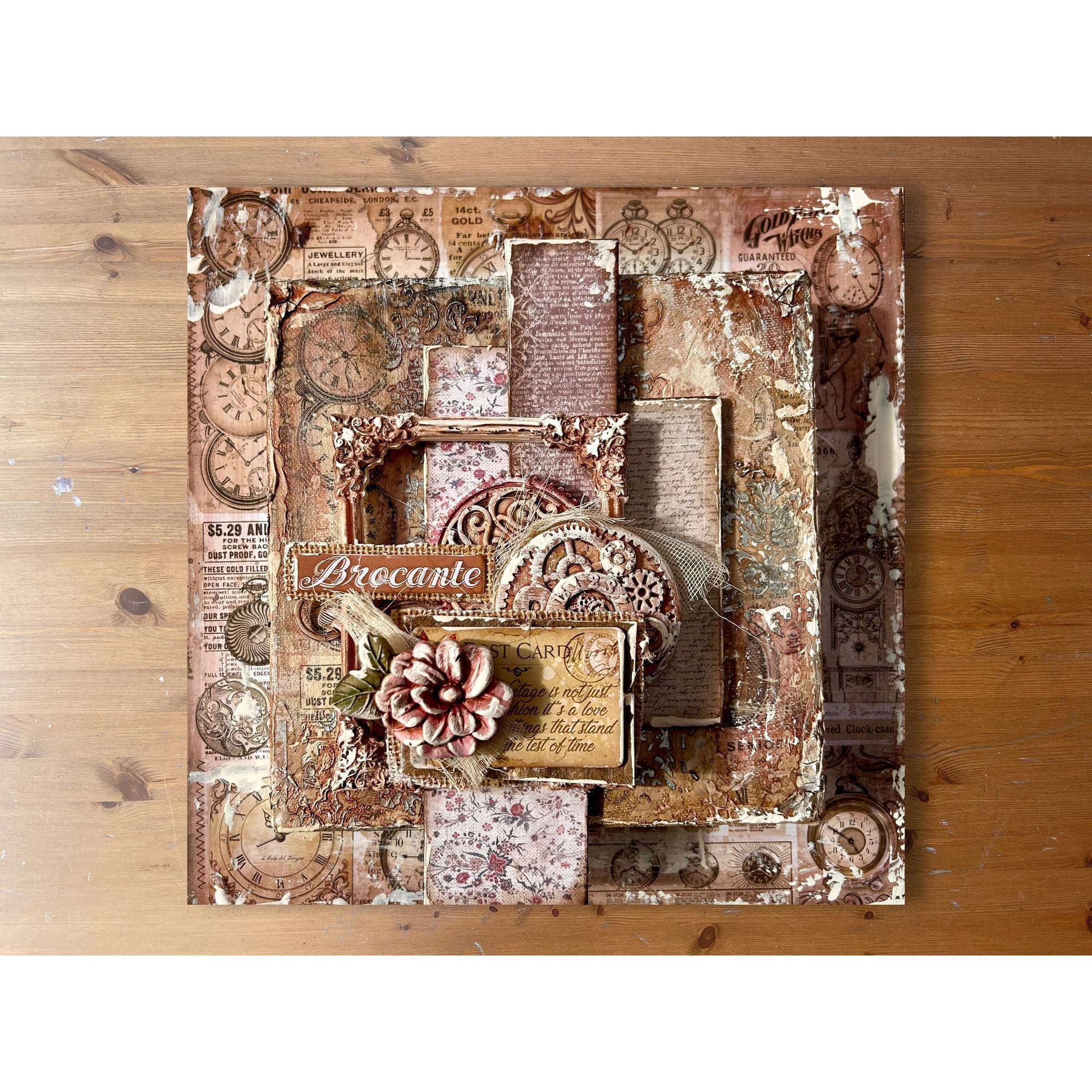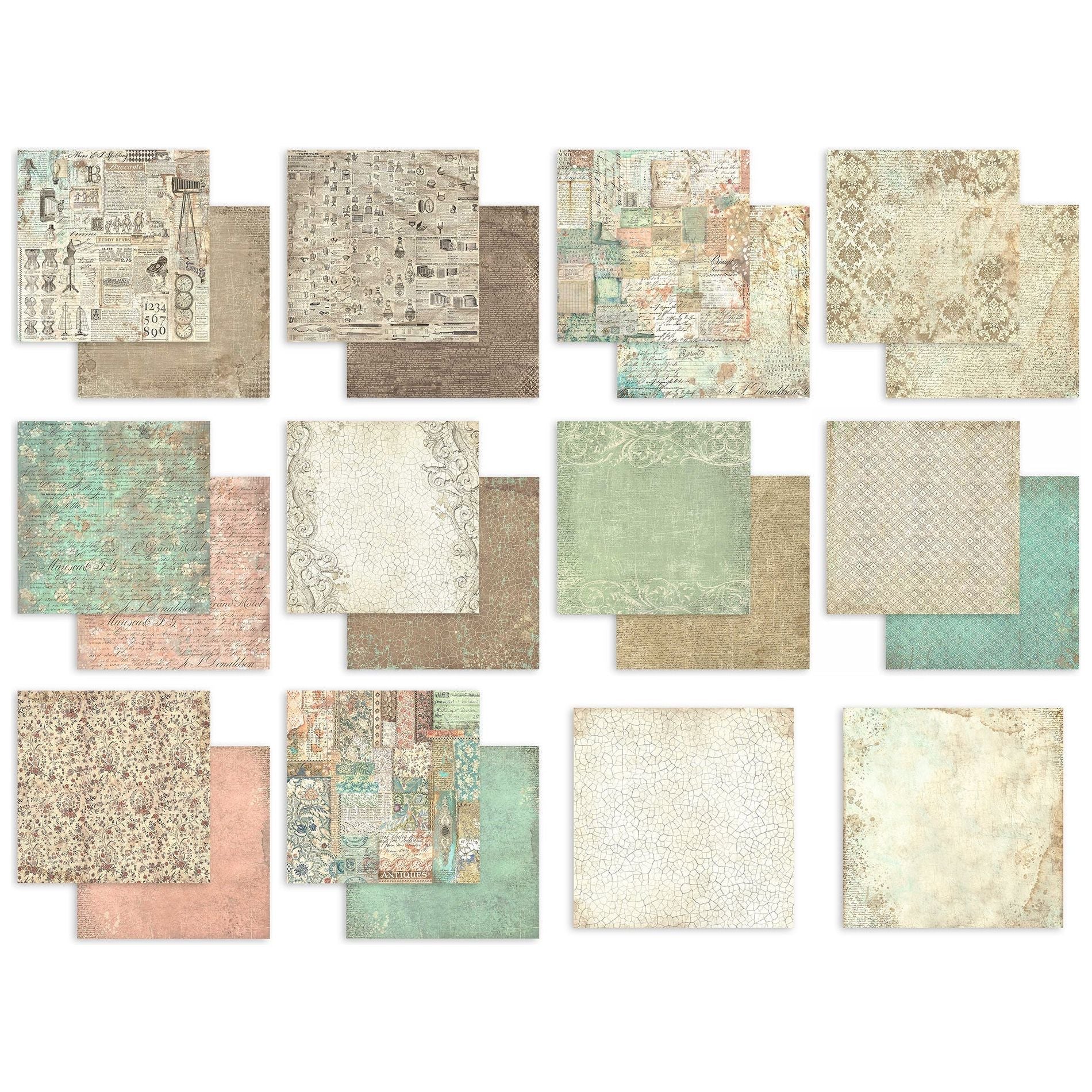 Step back in time with the enchanting Stamperia Brocante Antiques Backgrounds Selection 8x8 Paper, designed by the talented Sara Alcobendas. Immerse yourself in the romantic nostalgia of vintage markets and the timeless allure of antiques. This collection is a treasure trove of designs, featuring elegant florals, and classic timepieces. Included are ten double-sided sheets, each measuring 8 x 8 inches and meticulously crafted from high-quality cardstock weighing approximately 190 grams. Among the designs, you'll encounter vintage newsprint adorned with captivating advertisements, French articles exuding old-world charm, swatches of fabric hinting at tales of yesteryear, intricate collages featuring postcards, letters, and notes steeped in nostalgia, delicate damask prints adding a touch of elegance, scripted writing evoking a sense of romance, and textures weathered and distressed with the passage of time. Additionally, you'll find cracks, whimsical flourishes, and more, all contributing to the enchanting ambiance of this collection.