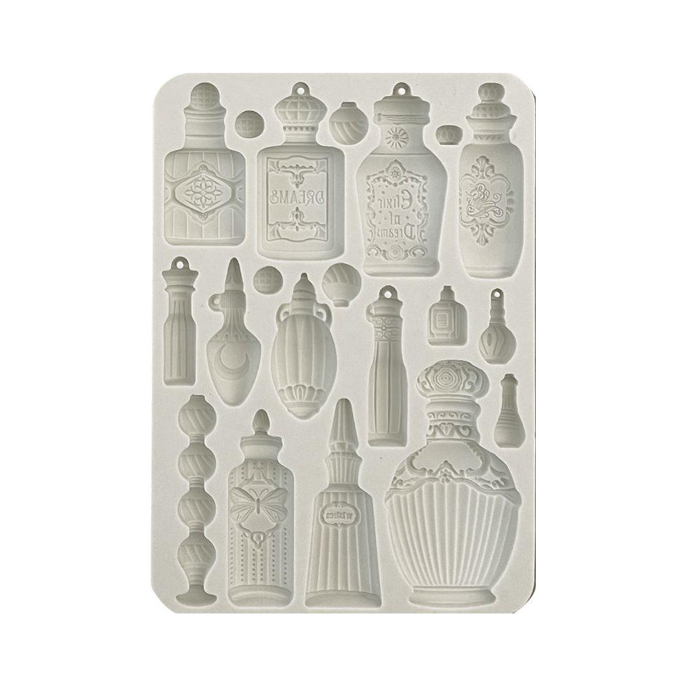 Embark on a creative expedition with the Fortune Collection, where each product serves as a canvas for storytelling and artistic expression. Designed by Cristina Radovan, this line features crafting materials steeped in antique and esoteric imagery, endowed with textures and symbols drawn from Egypt's wisdom and mystical past. This Alchemy Silicone Mold mold is crafted to serve a wide range of creative purposes. With dimensions of approximately 5.83 x 8.27 inches and a thickness of 0.27 inches, it offers both convenience and ease of use. Whether you're working with resin or clay, this product provides a reliable and precise mold for your artistic projects. With 20 designs, including potion and elixir bottles adorned with ornate stoppers, this mold sparks imagination and creativity. Some bottles even feature labels like "Dreams" and "Elixir in Dreams," adding depth and narrative to your creations.