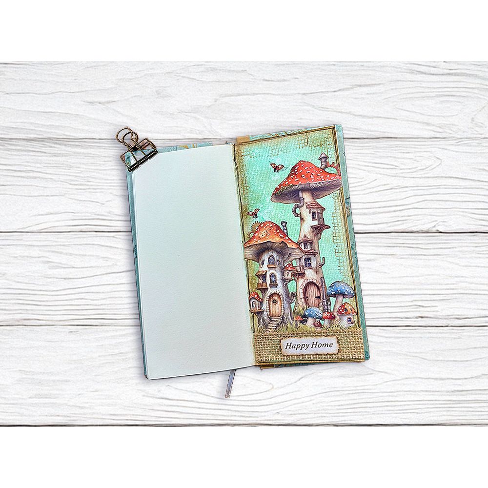 Hidden Grove, designed by Farrel Tailor for the Romantic Collection, invites you into a whimsical woodland world filled with charming gnomes, strawberries, and natural elements. This paper pad includes ten double-sided sheets, each measuring 12 x 12 inches and made from high-quality cardstock weighing approximately 190 gsm. The designs feature flowers, foliage, trees, gnomes, mushrooms, forest scenery, gnome and fairy houses, butterflies, squirrels, strawberries, badgers, branches, steampunk frogs, and night scenes. Also included are notecards with the same imagery that say "Joy," "Happiness," "For You," "Wonder," "Extraordinary," and "Home," along with labels featuring phrases such as "Happiness in the little things," "A Beautiful Day," "Small House Big Dreams," "You Are Amazing," and "Home Is Where Your Heart Is."