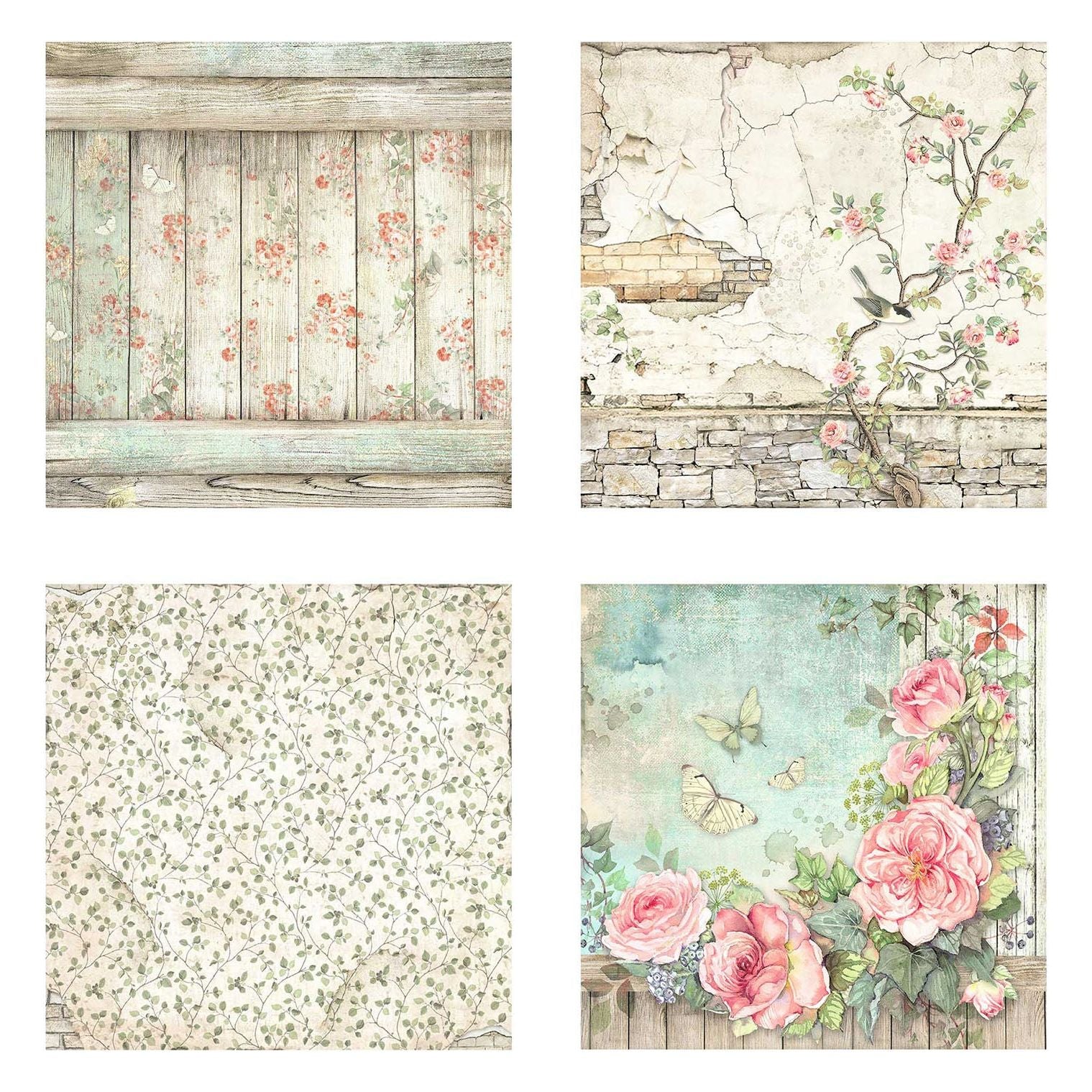 House of Roses is a romantic collection inspired by serene gardens filled with roses, soft pastels, and vintage elegance. This set includes four 12 x 12-inch fabric sheets, perfect for adding delicate textile elements to your projects. The sheets can be sewn by hand or with a sewing machine, or adhered to surfaces using craft glue. Washable by hand in cold water, these fabric sheets combine beauty with durability. The designs feature pink flowers, ivy, butterflies, florals on wood, cracked brick and mortar walls, branches, birds, and foliage, bringing a timeless charm to any creation.