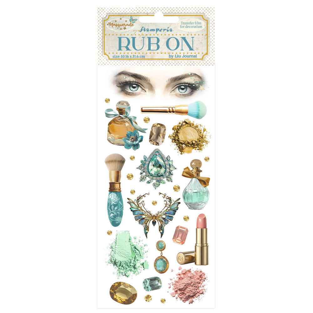 Stamperia Masquerade Beauty Rub Ons, designed by Liu Journal, is a stunning addition to your crafting collection. This transfer film allows you to effortlessly add beauty-themed elements to your creative projects. Measuring approximately 4 x 8.5 inches, the sheet features ethereal eyes, makeup powders, brushes, lipsticks, perfume, gemstones, and jewelry. Use tools like the Burin Double Ball Burnisher KR22NS or the Burin Punch and Ball Burnisher KRV03 to lift and transfer the rub-on designs onto any surface, making this a versatile and elegant choice for enhancing your crafting projects.