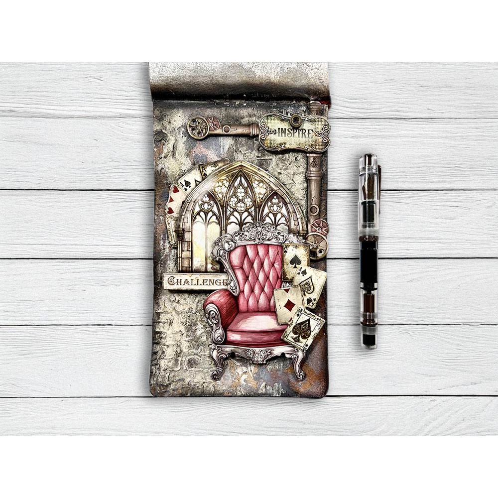 Master of Magic was designed by Antonis Tzanidakis, also known as Mr. Vagabond. This Collection captures his ongoing journey, drawing inspiration from the enchanting world of the circus—a realm of magic, transformation, and positive energy. This 8 x 10-inch stencil showcases an intricate collage of florals and brick textures that subtly form heart shapes. Ideal for adding depth and detail to mixed media, journaling, and papercrafting projects, this versatile design allows you to build layered backgrounds or create bold focal points. Use it with inks, pastes, or paints to bring a touch of whimsy and mystery to your creations.