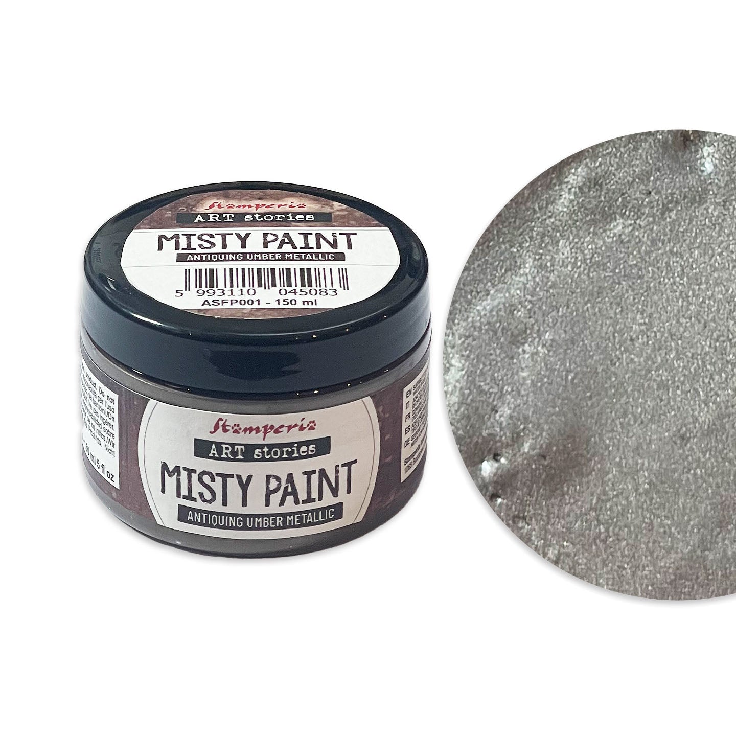 Stamperia Misty Paint Metallic Antiquing Umber is part of the Art Stories Collection. This vibrant, high-coverage water-based paint is specially formulated to react beautifully when misted with water, creating soft blends and unique effects. Perfect for mixed media and stenciling, it adds a sophisticated metallic touch to your projects. Antiquing Umber is a rich dark silver hue. Jar contains approximately 150 ml.