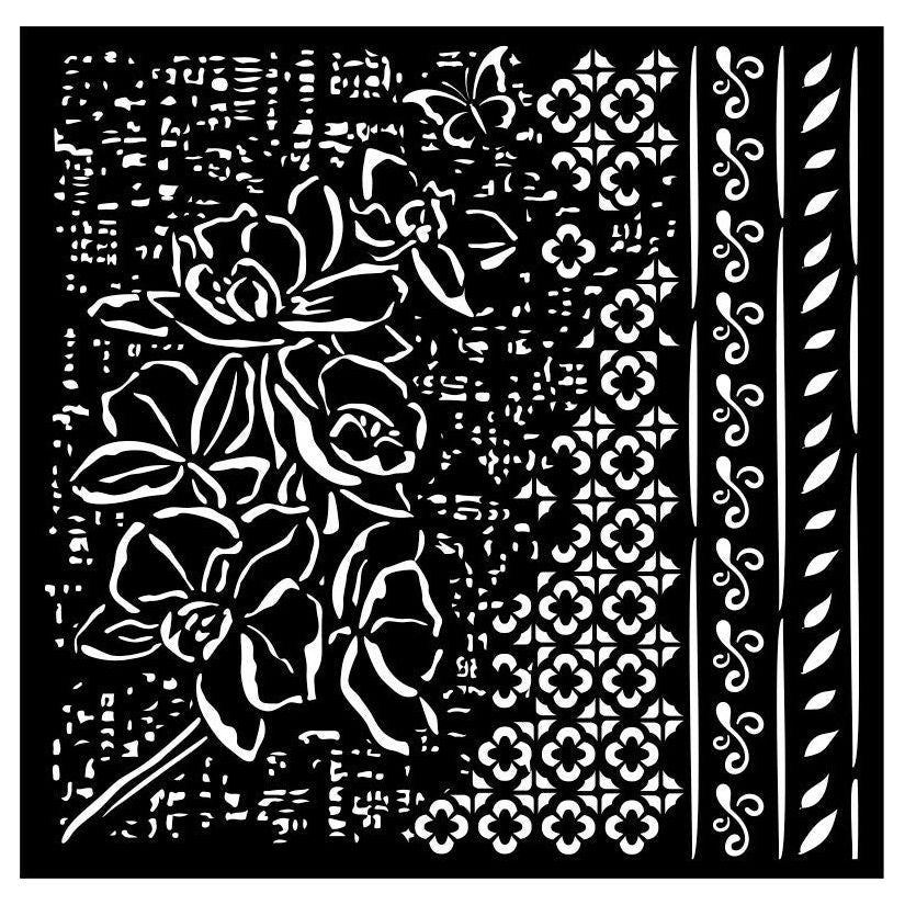 Orchids and Cats, beloved in many homes, embody elegance and adaptability, adding charm to our living. This collection, with its pastel colors, is versatile for any occasion. The Stamperia Orchids And Cats Orchid Pattern Stencil, sized at approximately 7x7 inches, offers a captivating collage background adorned with delicate flowers and intricate textures.