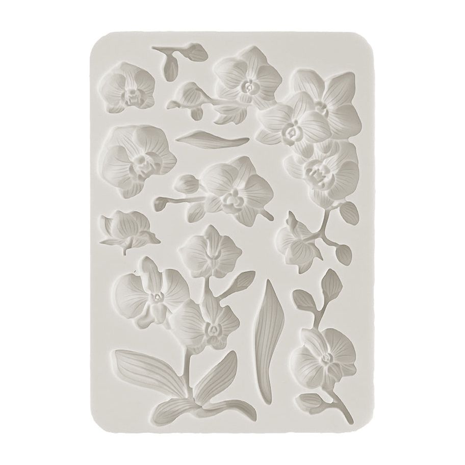 Orchids and Cats, beloved in many homes, embody elegance and adaptability, adding charm to our living. This collection, with its pastel colors, is versatile for any occasion. This versatile silicone mold is crafted to serve a wide range of creative purposes. With dimensions of approximately 5.83 x 8.27 inches and a thickness of 0.27 inches, it offers both convenience and ease of use. Whether you're working with resin or clay, this product provides a reliable and precise mold for your artistic projects. Stamperia Orchids And Cats Orchids A5 Silicone Mold feature 10 intricate designs of orchids with stems, delicate blooms, leaves, and twigs, this mold adds a touch of natural beauty to your creative projects.