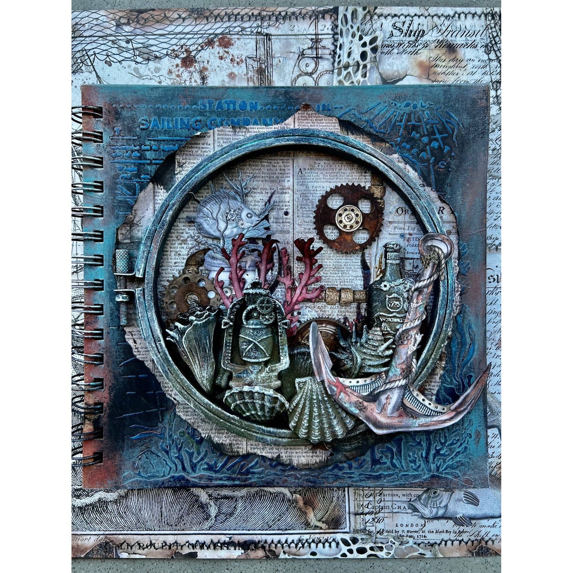 Stamperia Songs Of The Sea Ship And Treasures Die Cuts were designed by Antonis Tzanidakis and Farel Tailor. This collection reveals the perspective of both the Mermaid in the deep sea and the sailor in relentless pursuit of this enchanting creature. A touch of Steampunk adds a magical twist to the overall concept. There are 42 assorted die cuts printed on 800 gr cardboard in approximately 5x5 inch packaging. These versatile die cuts offer endless possibilities for creative projects, whether it's scrapbooking, card making, or mixed media art. The ephemera in this set include a ship, sunken treasures, maps, compasses, quills, steampunk items, anchors, steering wheels, lanterns, portholes, candles, and ornate frames. These elements are complemented by sentiments like "The ocean is everything I want it to be" and "It’s always our self we find in the sea." Immerse yourself in the allure of the sea