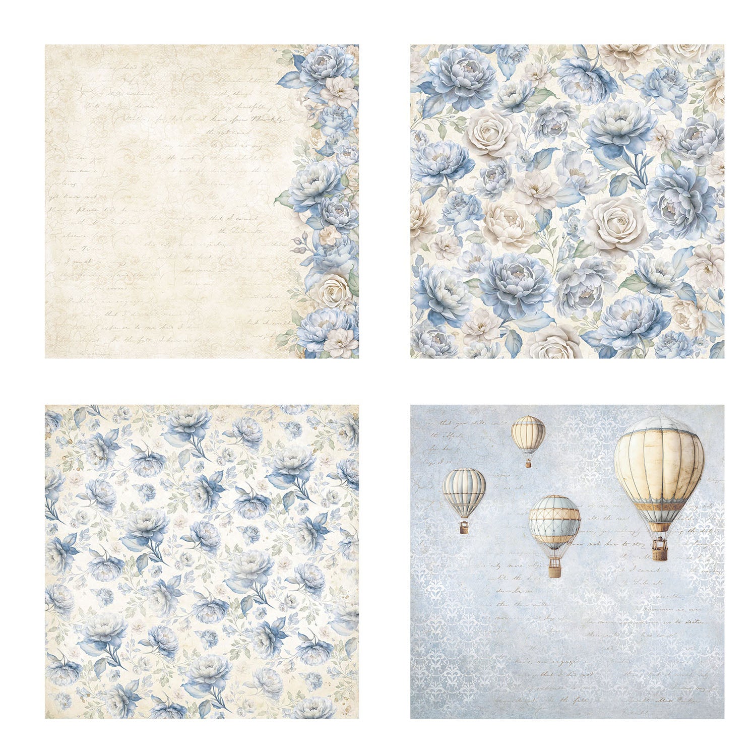 Timeless by Emilia Sieradzan, part of the Romantic Collection, is designed to cherish life’s sweetest and most intimate moments while celebrating love and charm. This set includes four 12x12-inch fabric sheets, perfect for incorporating fabric details into your projects. Each sheet features beautifully coordinated designs in cream and blue, including florals, damask patterns, handwritten script, and hot air balloons. These versatile fabric sheets can be sewn by hand or with a sewing machine, or adhered to surfaces using craft glue. They are hand-washable in cold water, offering both durability and flexibility for mixed media, cardmaking, journaling, and home décor projects.