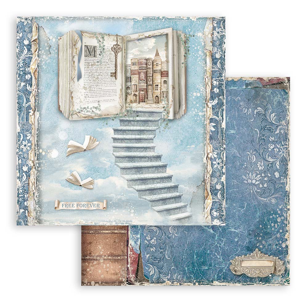 Stamperia Vintage Library 12 x 12 Paper is a collection of unique and creative designs that are perfect for a variety of artistic projects. Cristina Radovan, a skilled mixed-media artist, leads us through a fascinating trip going through romantic stories, music, discoveries and magic, but do not worry as she will be with you for the whole journey. You will travel with your imagination, in a land that does not exist outside your mind. The paper designs are very diverse, including book spines resembling buildings and houses, doors, bookshelves, stairs in the sky with floating books, keys, owls, piano, sheet music, gothic cable window, distressed brick, crystal ball, Book shop, bookmarks, moon, quill, windows, map or atlas, victorian photos, wallpaper designs, dragons and wizards, tags and labels, plus ephemera. This variety ensures that you'll have plenty of options to choose from when creating your art.