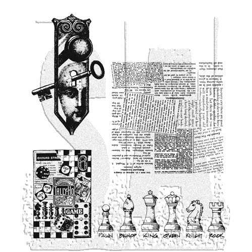 - Chess pieces stamp: approximately 4.25 x 1.625 inches