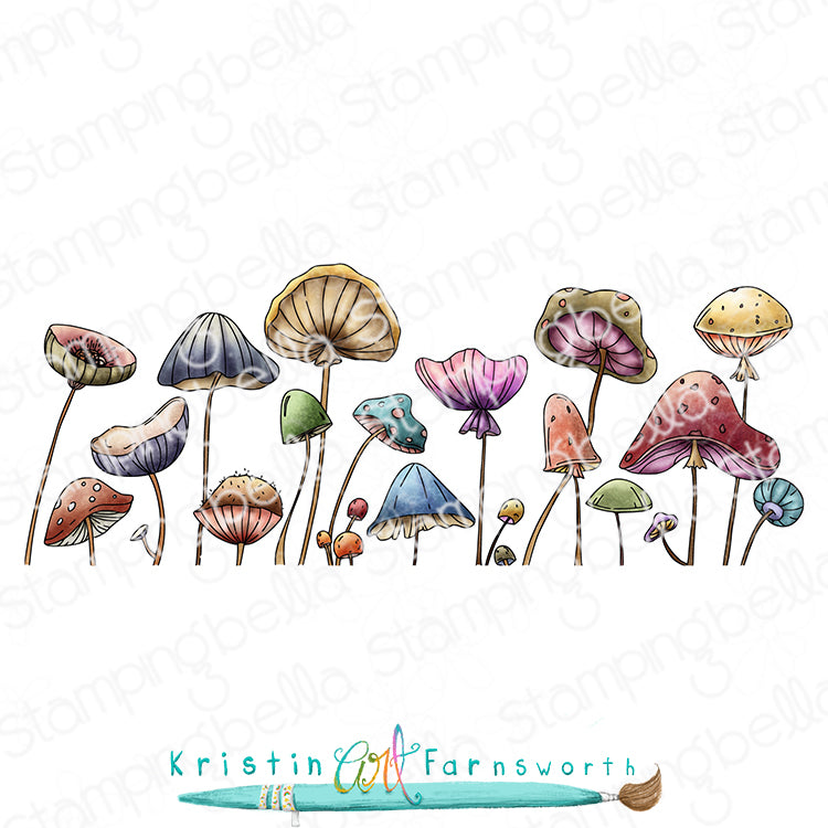The Stamping Bella Mushroom Border Cling Stamp is ideal for creating beautiful, autumn-themed cards. Designed by Kristin Farnsworth, this cling stamp is mounted on cling foam, deeply etched, and hand-cut to ensure a top-quality impression every time. Measuring 5 x 4 inches, the stamp features a delicate row of mushrooms resembling wildflowers, perfect for adding a whimsical, nature-inspired touch to your fall crafting projects.