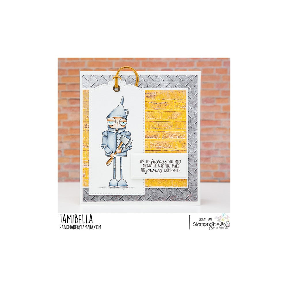 The Stamping Bella Oddball Oz Tinman Cling Stamp features a whimsical and unique design of the Tinman from the Wizard of Oz, holding his axe and ready for an adventure, complete with his trusty oil can.