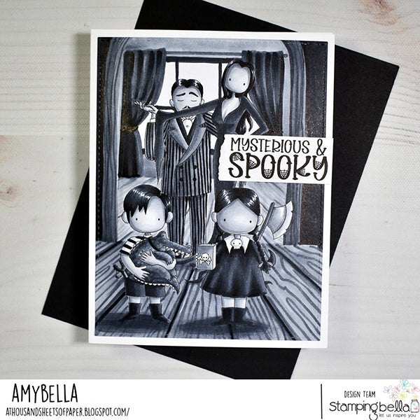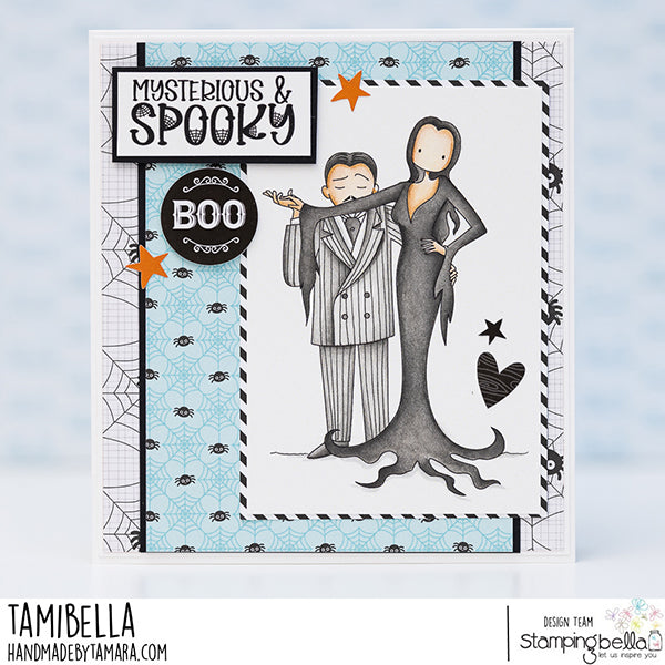 Stamping Bella Uptown Goth Parents Cling Stamp is the perfect choice for those who appreciate a spooky twist. These stamps are crafted with deep etching, precise hand-cutting, and secure mounting on cling foam. The stamp set measures 5x4 inches and includes one design. Like a modern twist on Gomez and Morticia Addams, this couple is ready to add a touch of haunting elegance. The dad affectionately kisses his wife's outstretched arm, creating an evocative and timeless image.