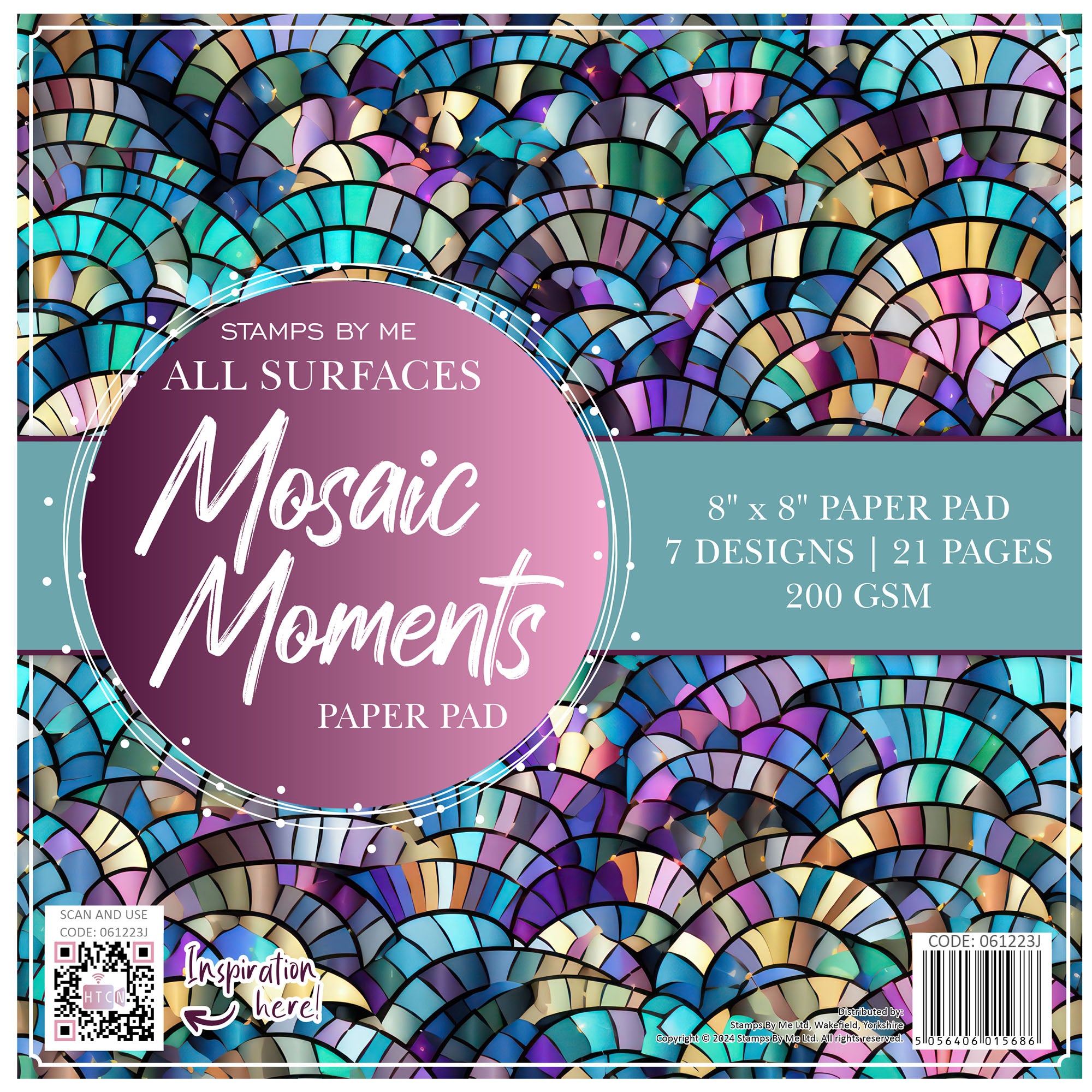 Stamps By Me Mosaic Moments Paper Pack is a stunning all‑surfaces pad that showcases a mesmerizing array of stained‑glass mosaic designs, featuring vibrant hues of blue, purple, and gold. This pad contains 21 pages featuring 7 distinct designs, printed on premium 200gsm paper, with each sheet measuring approximately 8 x 8 inches.