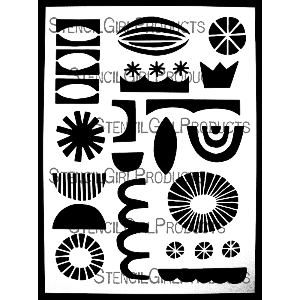 Introducing the StencilGirl Shape Collection Stencil by Lucie Duclos, a 9 x 12-inch canvas of endless creativity. This stencil showcases a captivating collection of shapes that inspire you to experiment with configurations. Flip, overlap, or mirror these bold, mid-century modern-inspired designs to infuse a whimsical charm into your artwork. Unleash your imagination and explore limitless possibilities with this versatile stencil.